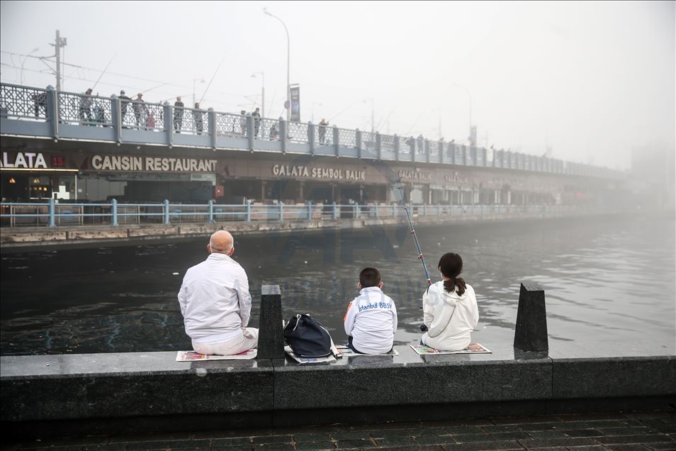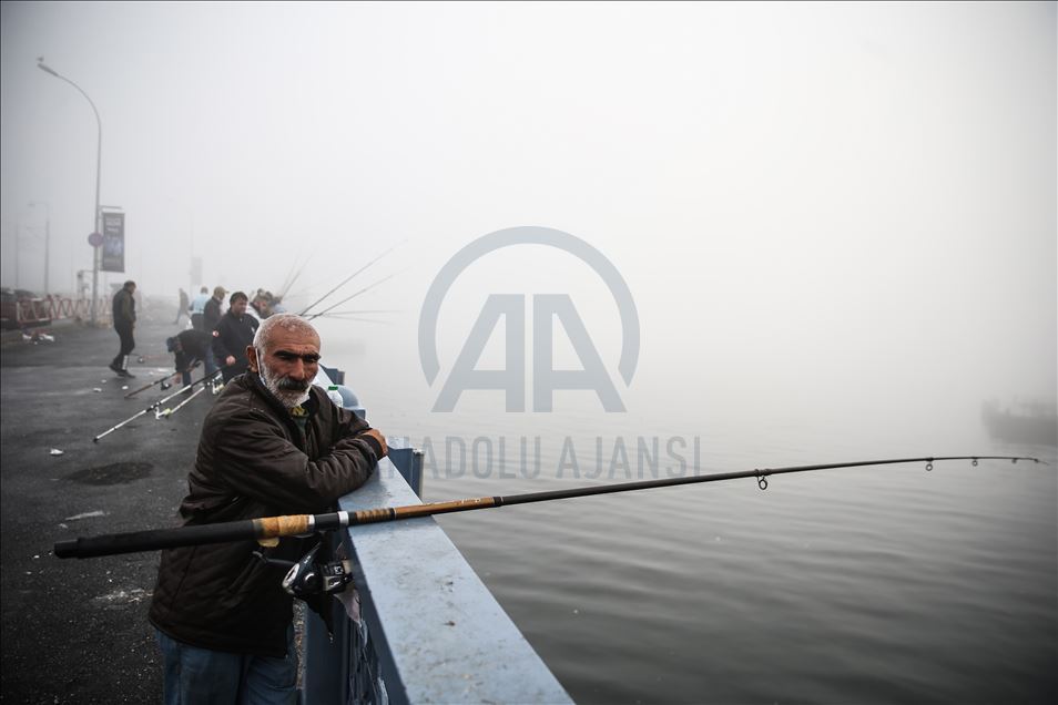 İstanbul Eminönü ve çevresinde sabahın erken saatlerinde sis etkili oldu. Sise rağmen bazı vatandaşlar Galata Köprüsü'nde balık tutmaya devam etti. ( Emrah Yorulmaz - Anadolu Ajansı )Emrah Yorulmaz