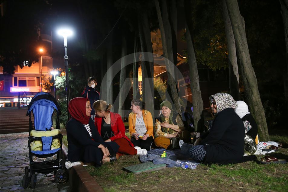 Merkez üssü Marmara Denizi Silivri olan 5,8 büyüklüğünde depremin ardından evlerine girmeyen bazı vatandaşlar, Bahçelievler ilçesindeki Milli Egemenlik Parkı'nda beklemeye devam etti. ( Arif Hüdaverdi Yaman - Anadolu Ajansı )Arif Hüdaverdi Yaman