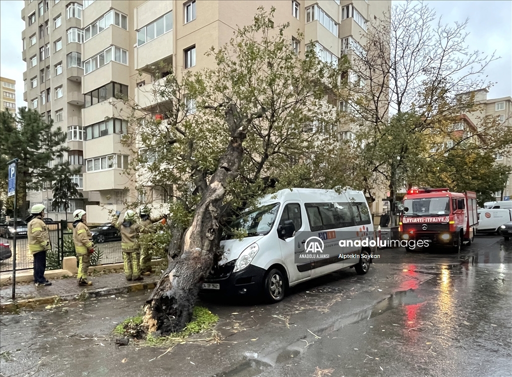 İstanbul'da etkili olan fırtına nedeniyle Kadıköy'de bir ağaç, park halindeki İstanbul Büyükşehir Belediyesine ait minibüsün üzerine devrildi. ( Alptekin Soykan - Anadolu Ajansı )Alptekin Soykan