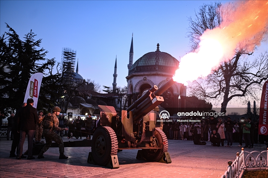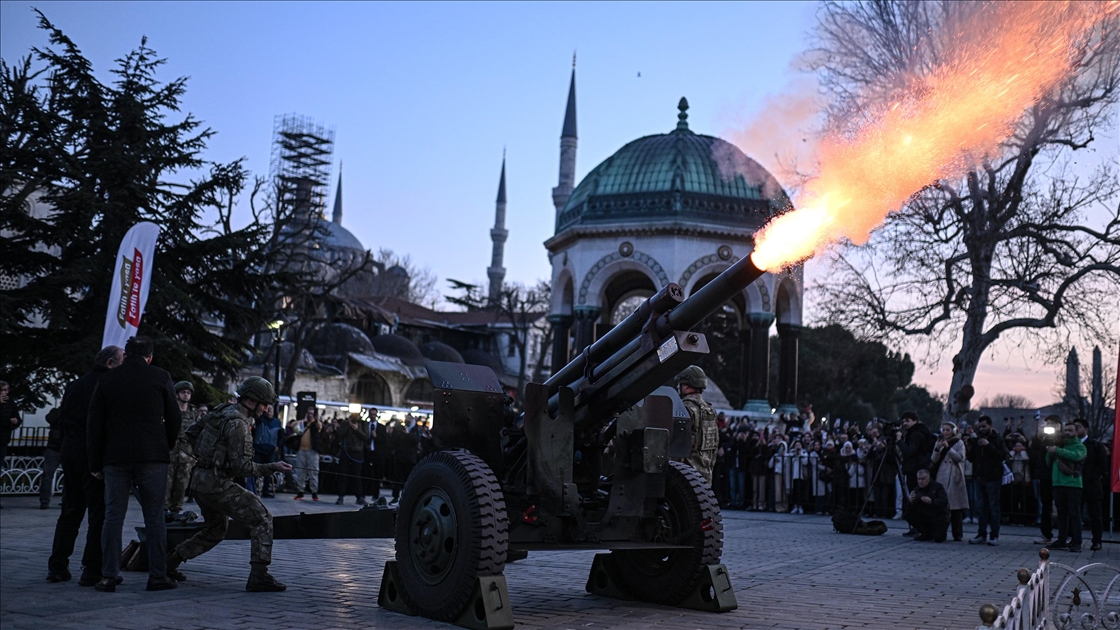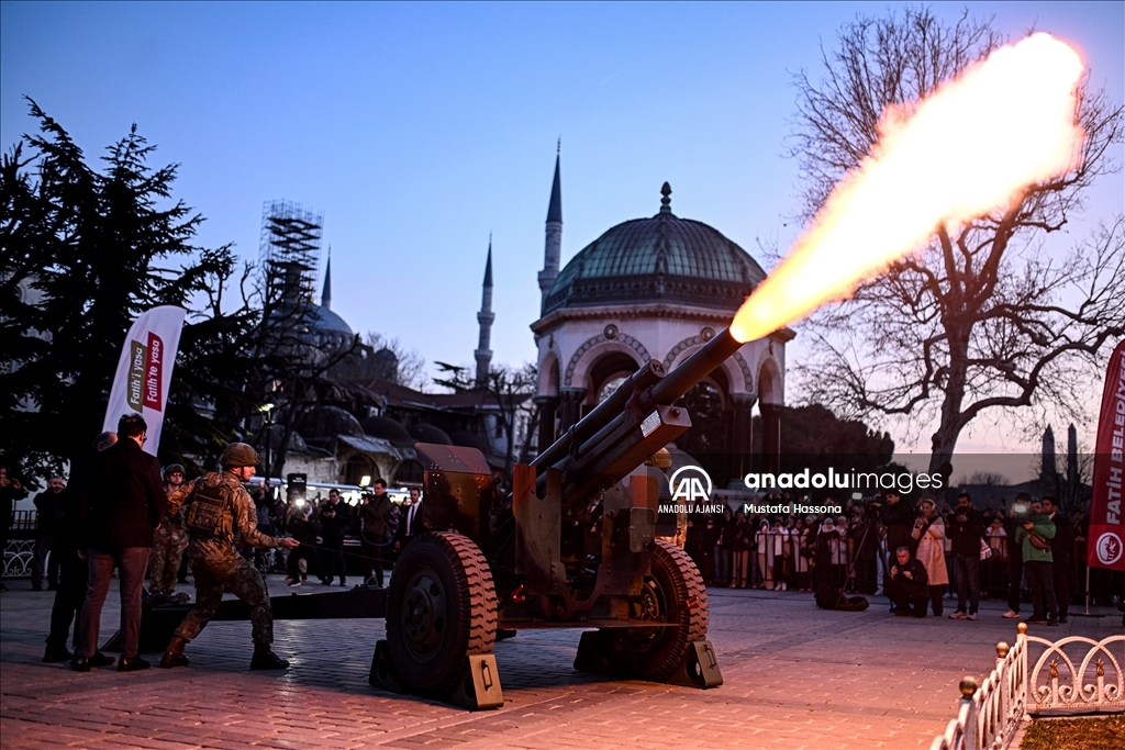 İstanbul'da ilk iftar saatinin gelmesiyle ramazan geleneği olan top atışı, Sultanahmet Meydanı'nda gerçekleştirildi.