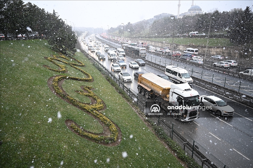İstanbul'da kar yağışı, öğle saatlerinden itibaren etkisini sürdürdü.