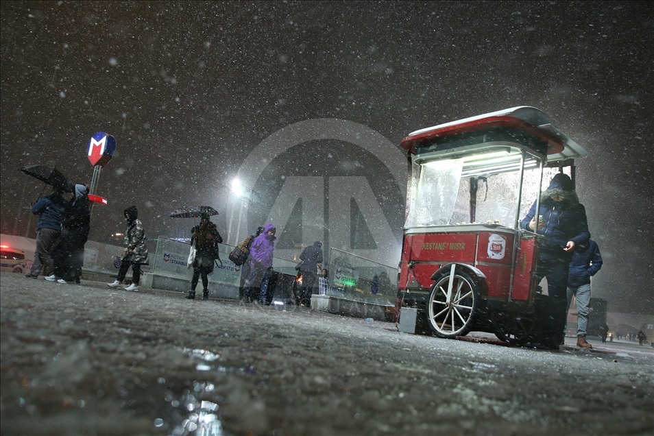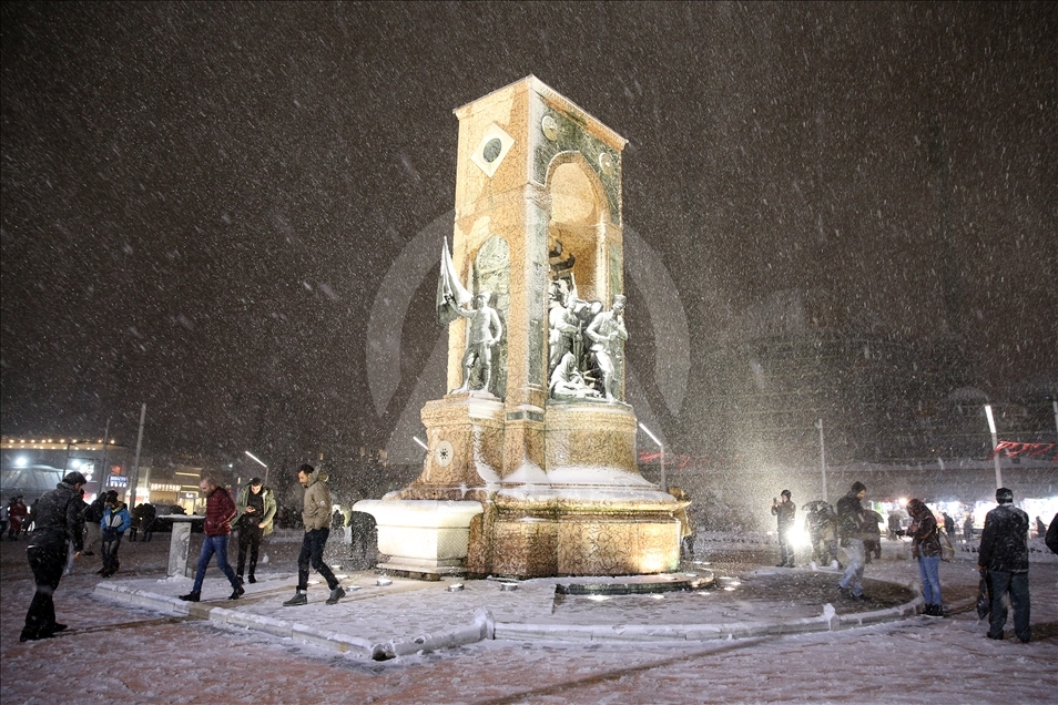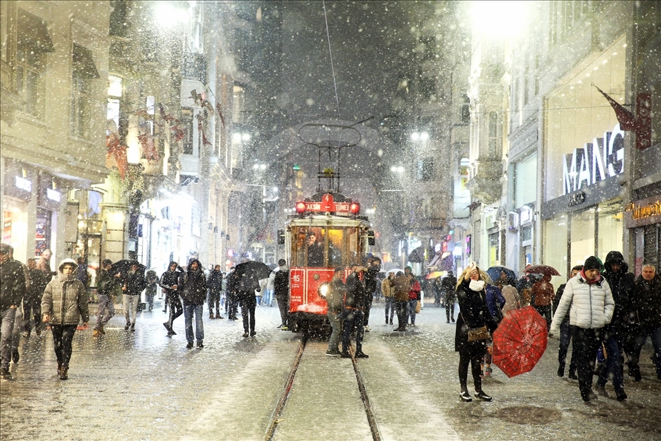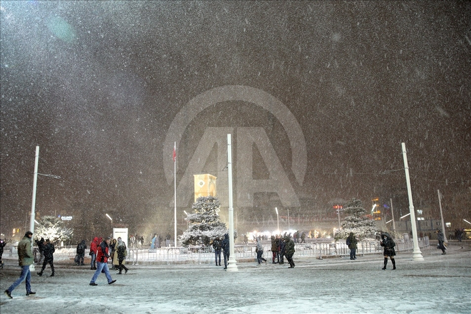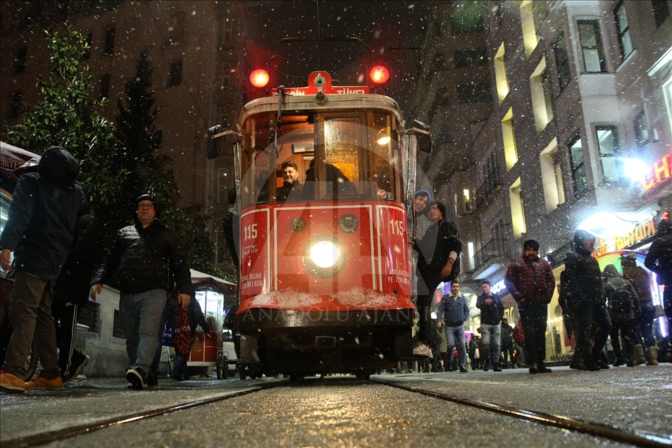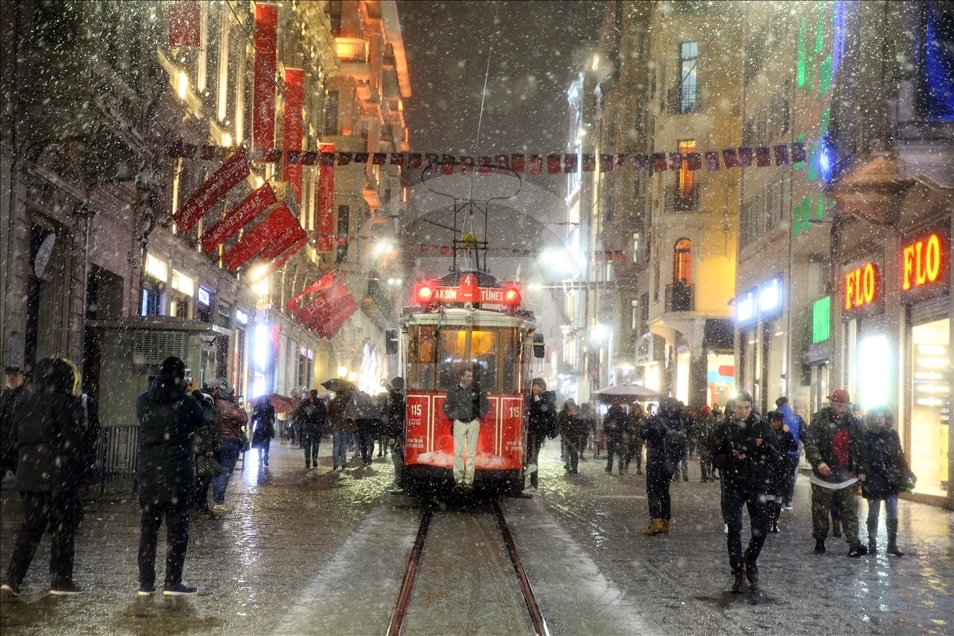 İstanbul'da Taksim ve İstiklal Caddesi'nde kar yağışı etkili oldu.