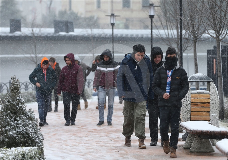 İstanbul'da kar yağışı Başakşehir'de etkili oldu. Bazı vatandaşlar kar topu oynadı. ( İsa Terli - Anadolu Ajansı )İsa Terli
