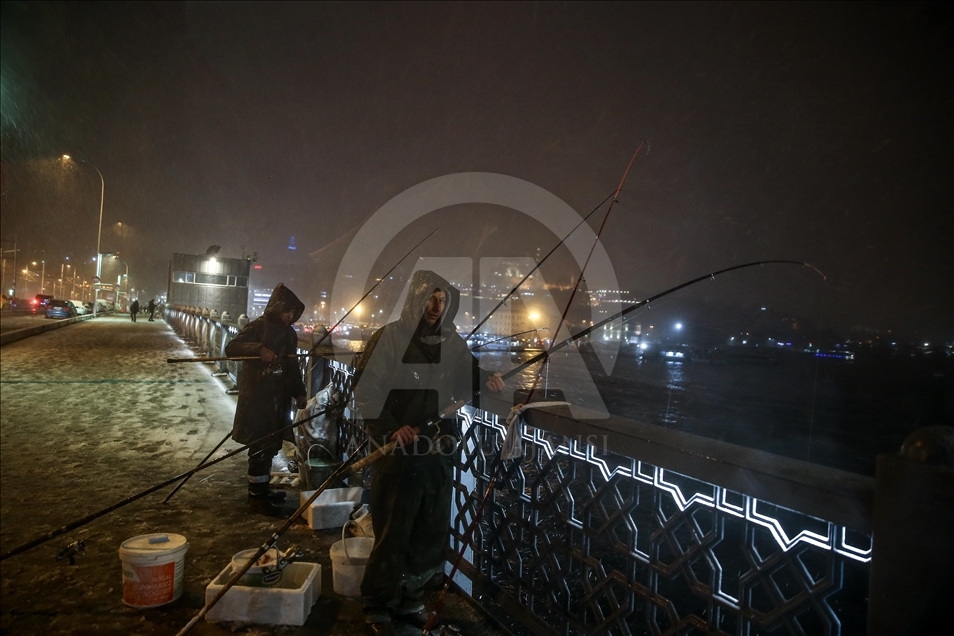 İstanbul'da kar yağışı, Galata Köprüsü ve çevresinde etkili oldu. Balıkçılar, kar yağışına rağmen balık tutmaya devam etti. ( Onur Çoban - Anadolu Ajansı )Onur Çoban
