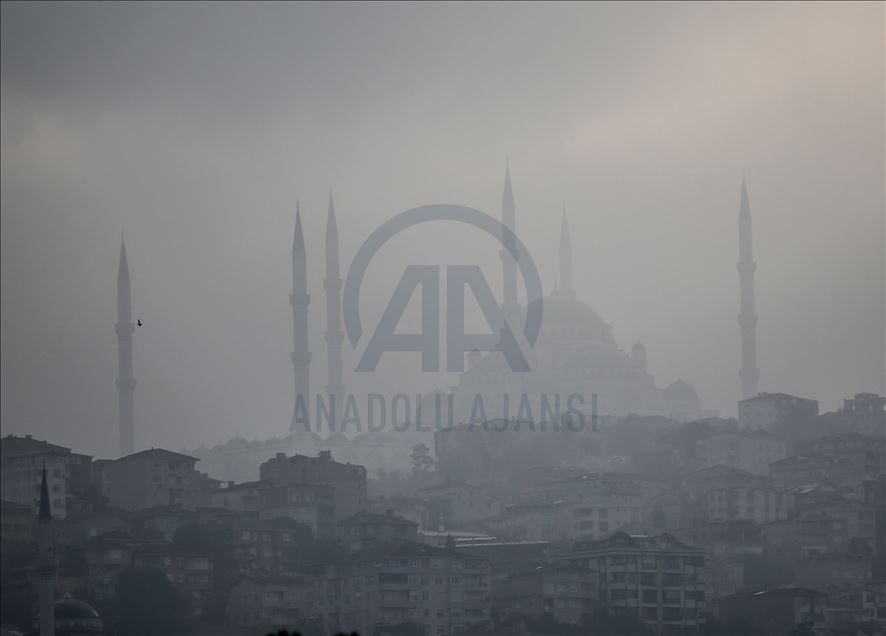 İstanbul'da sabah saatlerinde oluşan sis, Büyük Çamlıca Camisi ve çevresinde etkili oldu. ( Emrah Yorulmaz - Anadolu Ajansı )