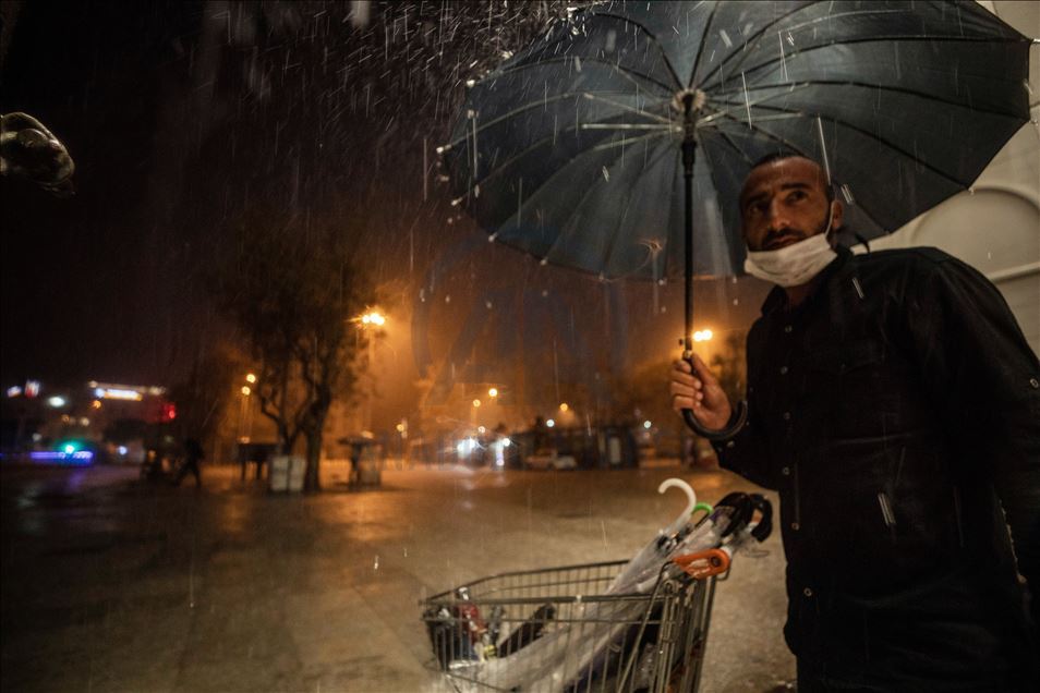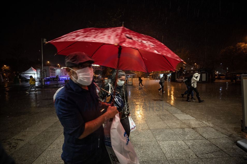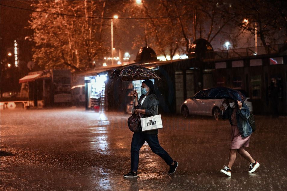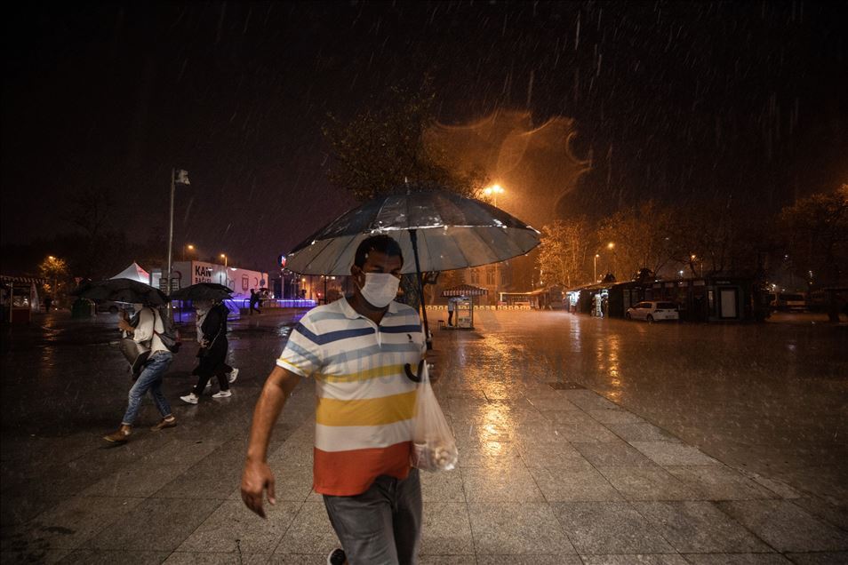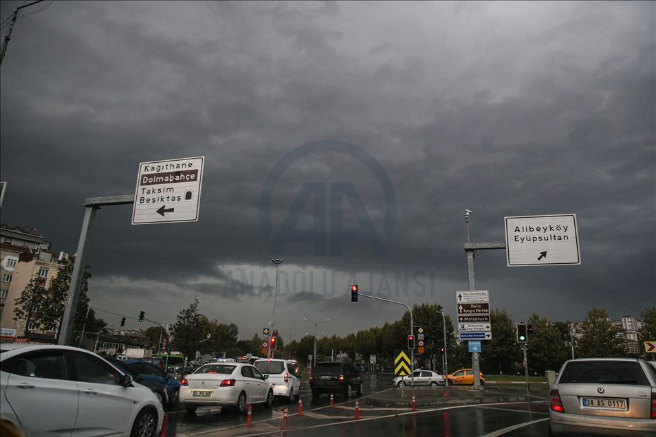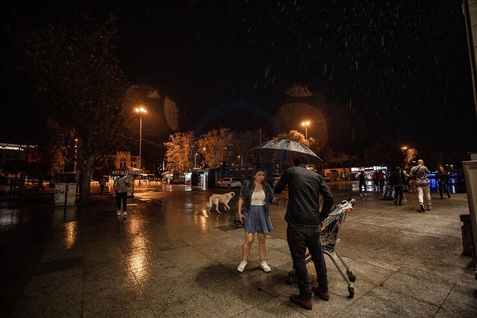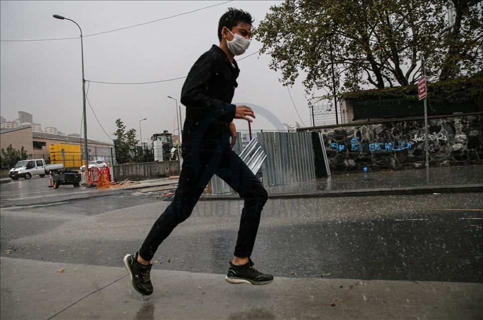 İstanbul Eyüp’te ani bastıran sağanak hayatı olumsuz etkiledi. ( Elif Öztürk - Anadolu Ajansı )