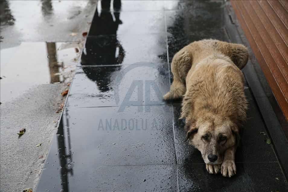 İstanbul Eyüp’te ani bastıran sağanak sokak hayvanlarını olumsuz etkiledi. ( Elif Öztürk - Anadolu Ajansı )