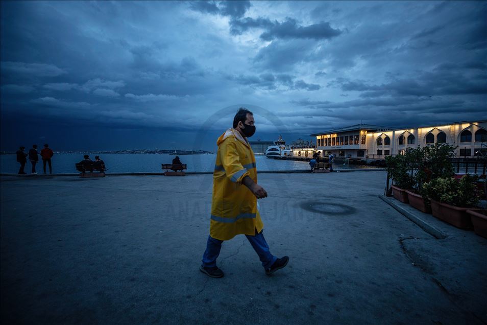 İstanbul Kadıköy'de ani bastıran sağanak hayatı olumsuz etkiledi. ( Şebnem Coşkun - Anadolu Ajansı )