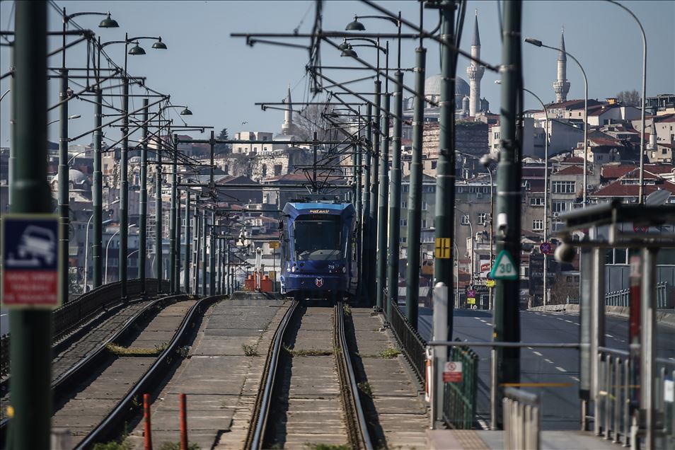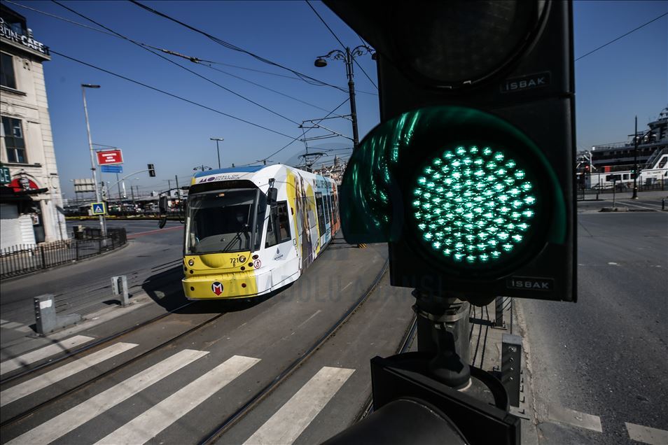 İstanbul'da, yeni tip koronavirüsle (Kovid-19) mücadele kapsamında alınan sokağa çıkma kısıtlamasının başlamasının ardından Eminönü ve Karaköy bölgesinin de boş kaldığı görüldü. Kısıtlama nedeniyle tramwaylar sadece sabah ve akşam sefer yapıyor. ( Onur Çoban - Anadolu Ajansı )Onur Çoban
