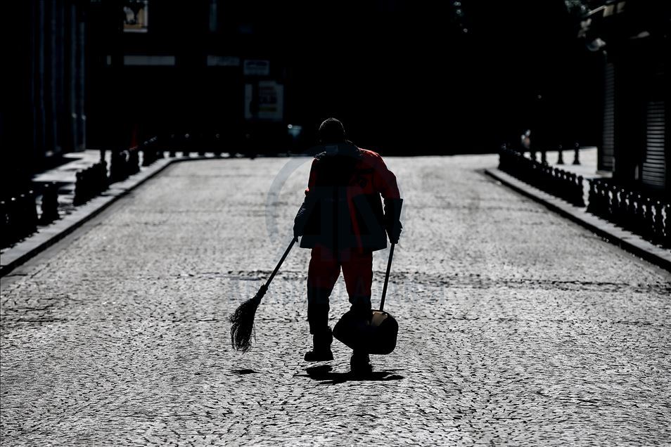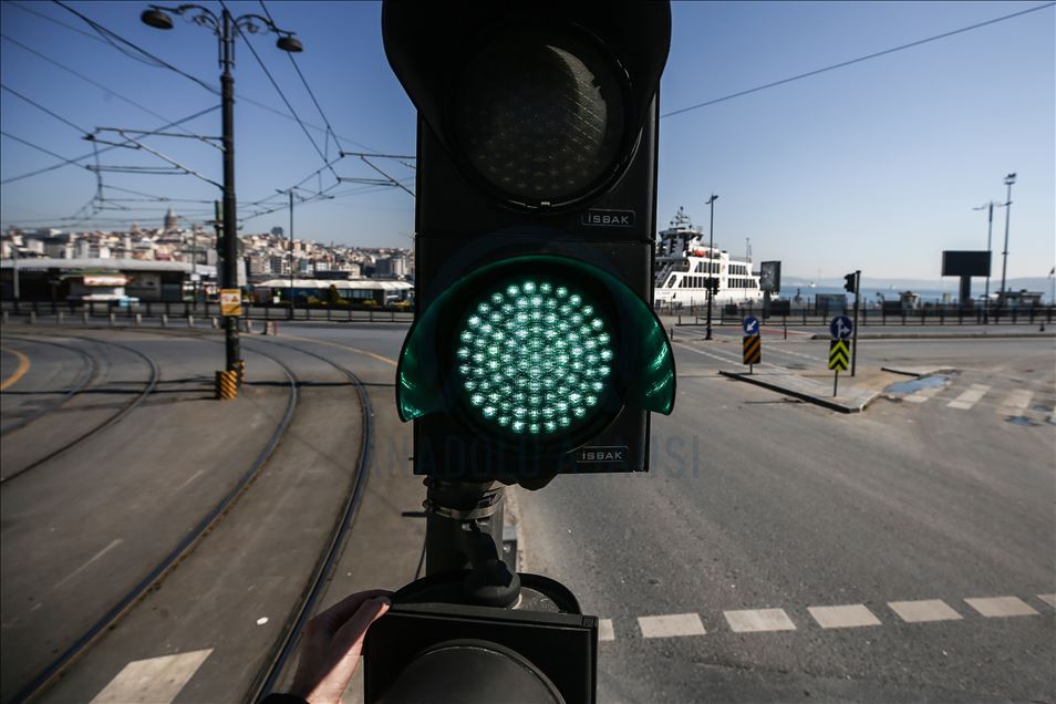 İstanbul'da, yeni tip koronavirüsle (Kovid-19) mücadele kapsamında alınan sokağa çıkma kısıtlamasının başlamasının ardından Eminönü ve Karaköy bölgesinin de boş kaldığı görüldü. ( Onur Çoban - Anadolu Ajansı )Onur Çoban