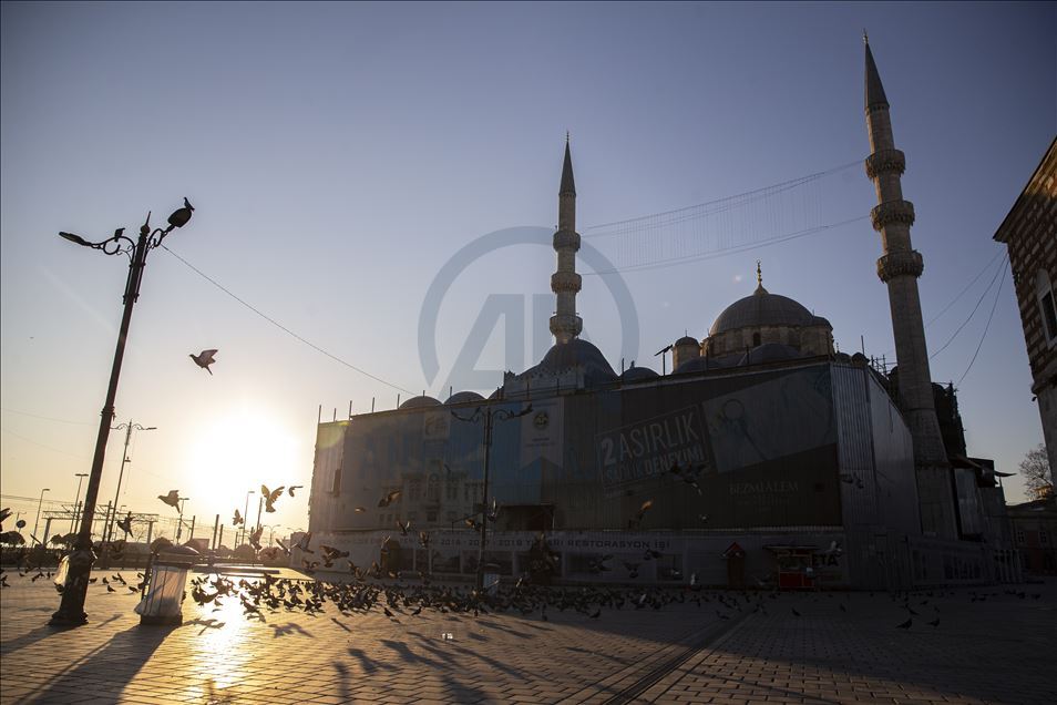 İstanbul'da, yeni tip koronavirüsle (Kovid-19) mücadele kapsamında alınan sokağa çıkma kısıtlamasının başlamasının ardından Eminönü bölgesinin de boş kaldığı görüldü. ( Arif Hüdaverdi Yaman - Anadolu Ajansı )Arif Hüdaverdi Yaman
