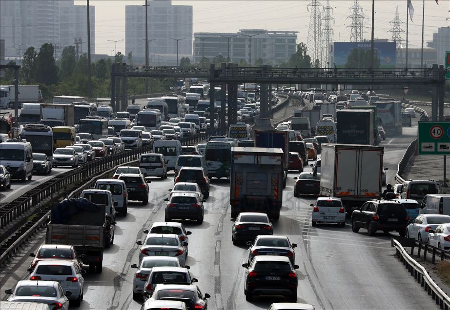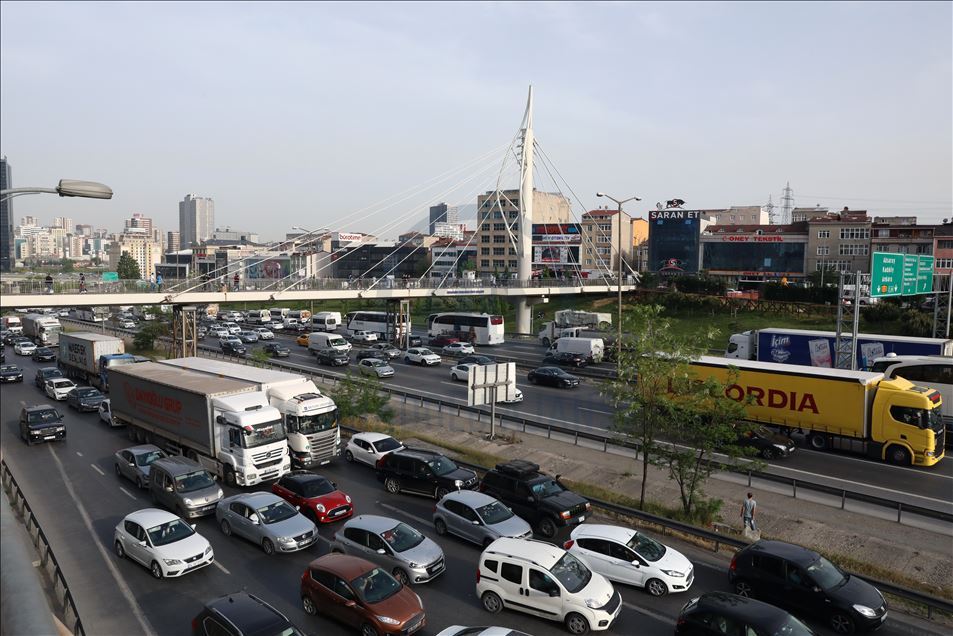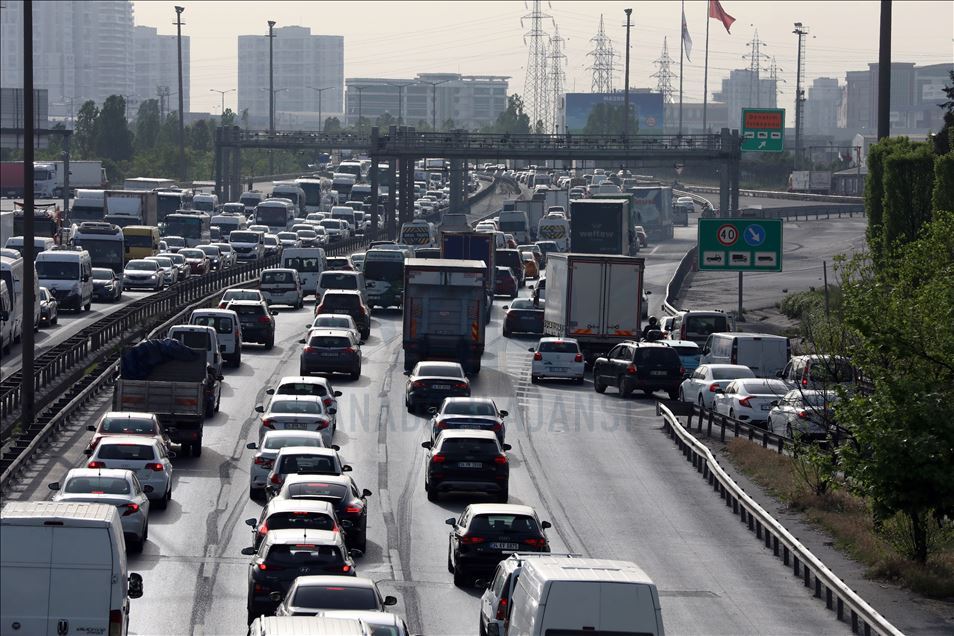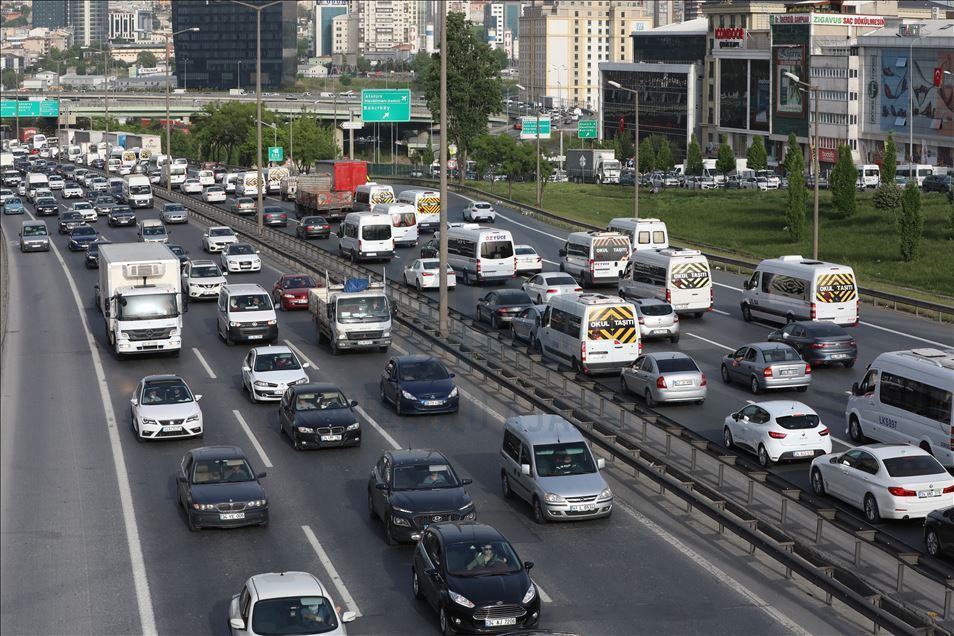 İstanbul'da yeni tip koronavirüsle (Kovid-19) mücadele kapsamında 4 günlük sokağa çıkma kısıtlamasının sona ermesiyle ana arterlerde trafik yoğunluğu oluştu.