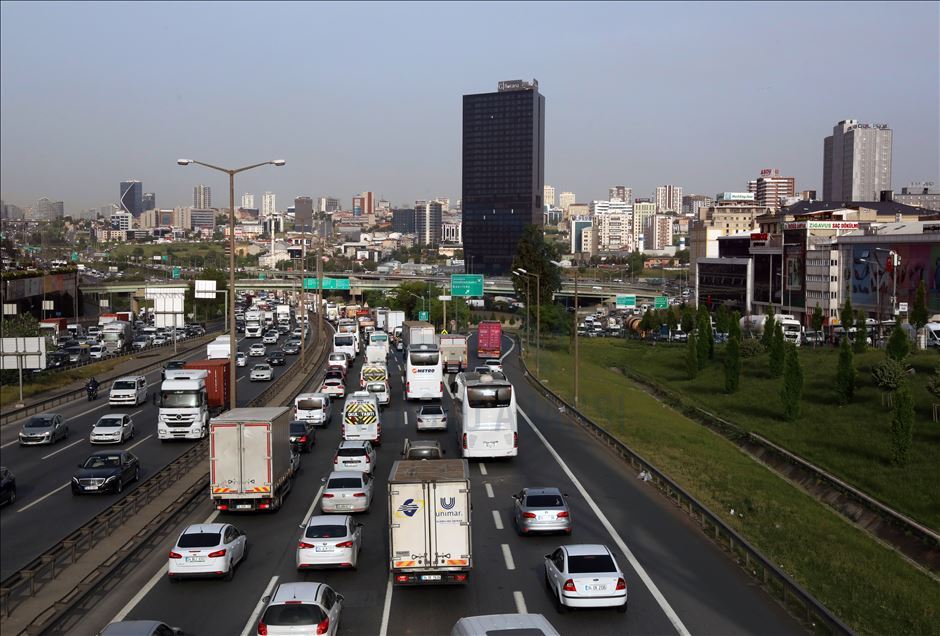İstanbul'da yeni tip koronavirüsle (Kovid-19) mücadele kapsamında uygulanan 4 günlük sokağa çıkma kısıtlamasının ardından haftanın ilk günü kentin ana artelerinde trafik yoğunluğu oluştu. ( Onur Çoban - Anadolu Ajansı )Onur Çoban
