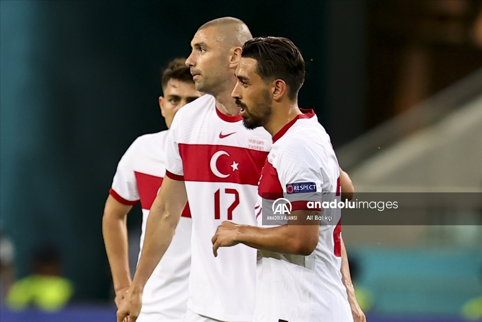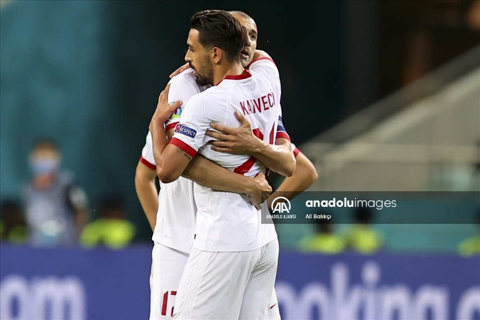 2020 Avrupa Futbol Şampiyonası (EURO 2020) A grubu üçüncü maçında, İsviçre milli takımı ile A Milli Takım Azerbaycan’ın başkenti Bakü’deki Olimpiyat Stadı'nda karşı karşıya geldi. Karşılaşmada, A Milli Takım futbolcusu İrfan Can Kahveci (ortada), attığı golün ardından sevincini takım arkadaşı Merih Demiral (solda) ile paylaştı. ( Burak Akbulut - Anadolu Ajansı )Burak Akbulut