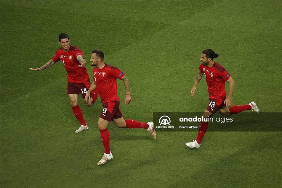 2020 Avrupa Futbol Şampiyonası (EURO 2020) A grubu üçüncü maçında, İsviçre milli takımı ile A Milli Takım Azerbaycan’ın başkenti Bakü’deki Olimpiyat Stadı'nda karşı karşıya geldi. Karşılaşmada, İsviçre milli takımının futbolcusu Haris Seferovic (ortada), attığı golün ardından sevinç yaşadı. ( Burak Akbulut - Anadolu Ajansı )Burak Akbulut