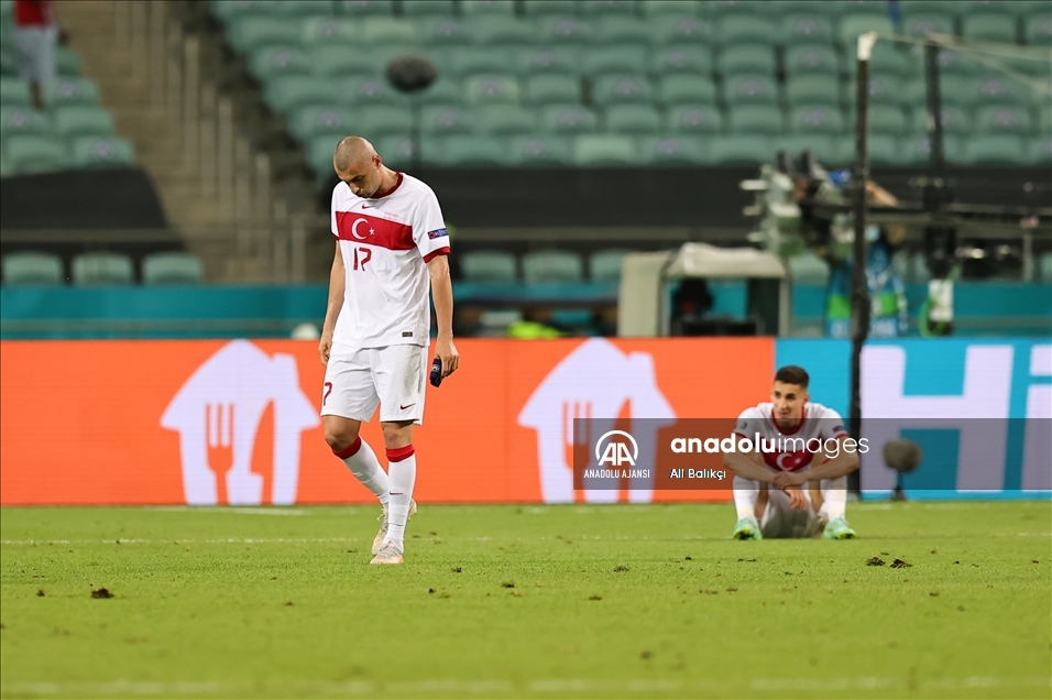 2020 Avrupa Futbol Şampiyonası (EURO 2020) A Grubu üçüncü maçında Türkiye A Milli Futbol Takımı, Bakü Olimpiyat Stadyumu’nda İsviçre ile karşılaştı. A Milli Takım oyuncuları mağlubiyet üzüntüsü yaşadı. ( Ali Balıkçı - Anadolu Ajansı )Ali Balıkçı