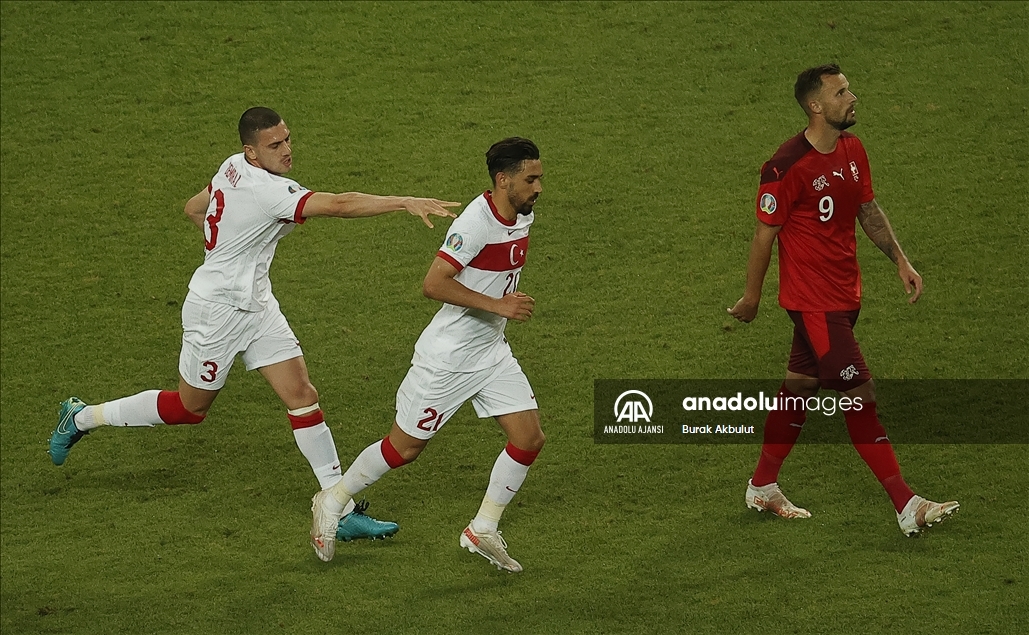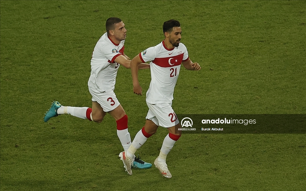 2020 Avrupa Futbol Şampiyonası (EURO 2020) A grubu üçüncü maçında, İsviçre milli takımı ile A Milli Takım Azerbaycan’ın başkenti Bakü’deki Olimpiyat Stadı'nda karşı karşıya geldi. Karşılaşmada, A Milli Takım futbolcusu İrfan Can Kahveci (sağda), attığı golün ardından sevincini takım arkadaşı Merih Demiral (solda) ile paylaştı. ( Burak Akbulut - Anadolu Ajansı )Burak Akbulut