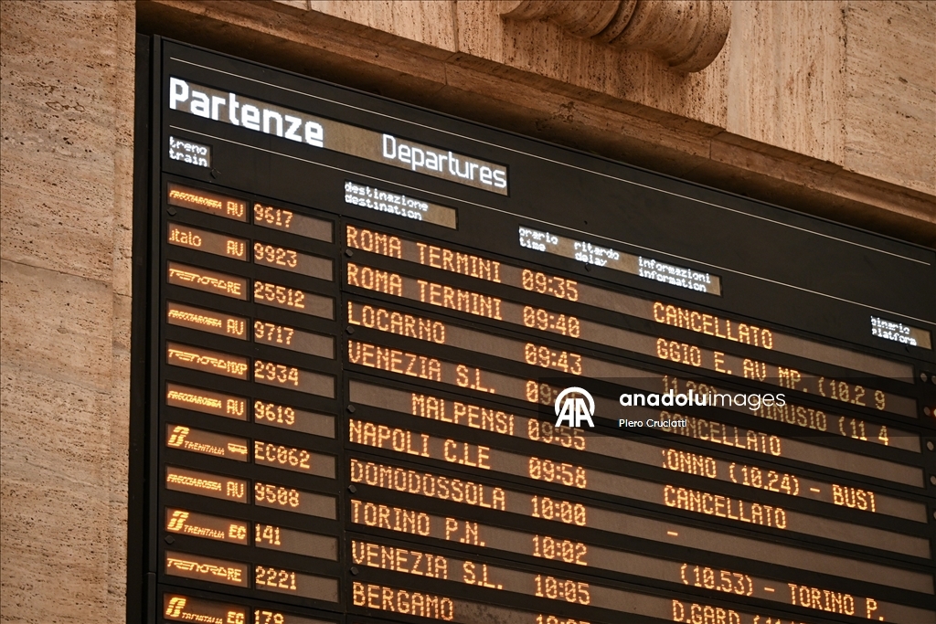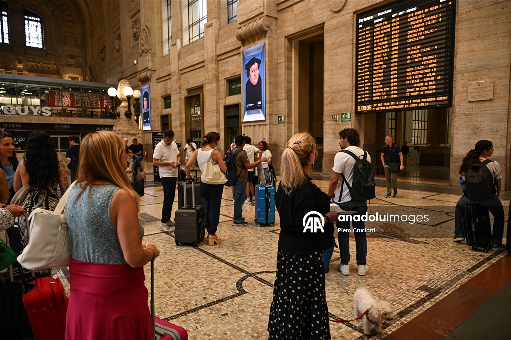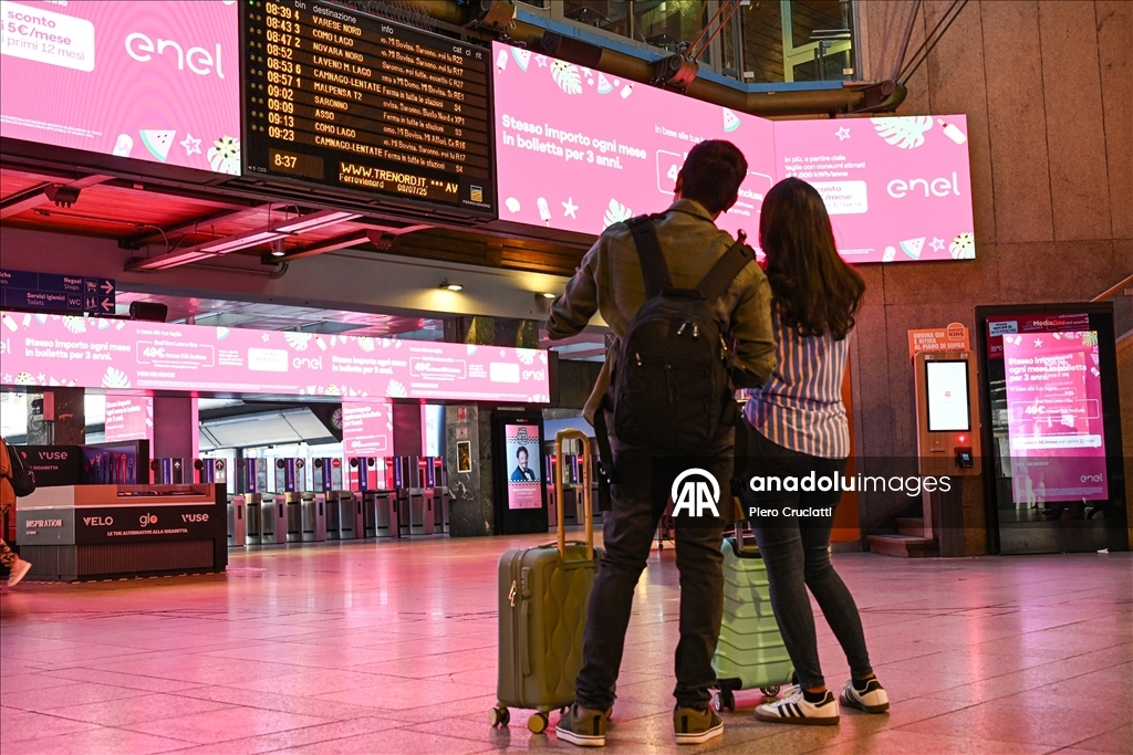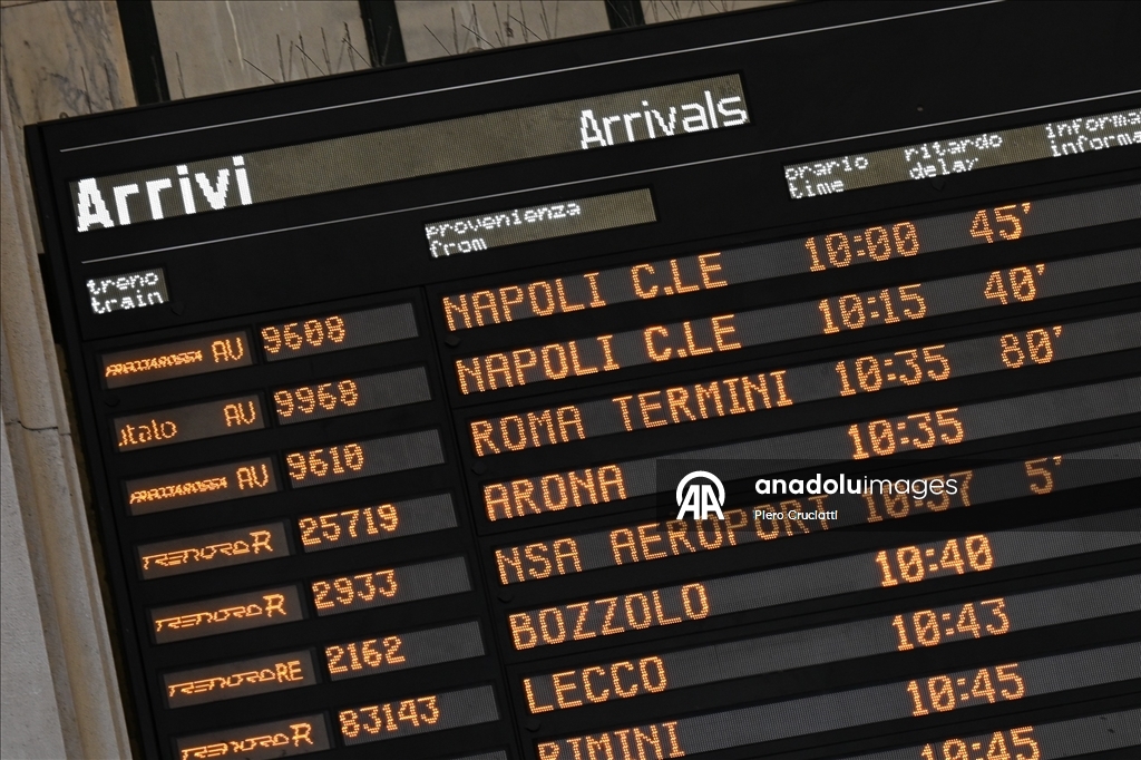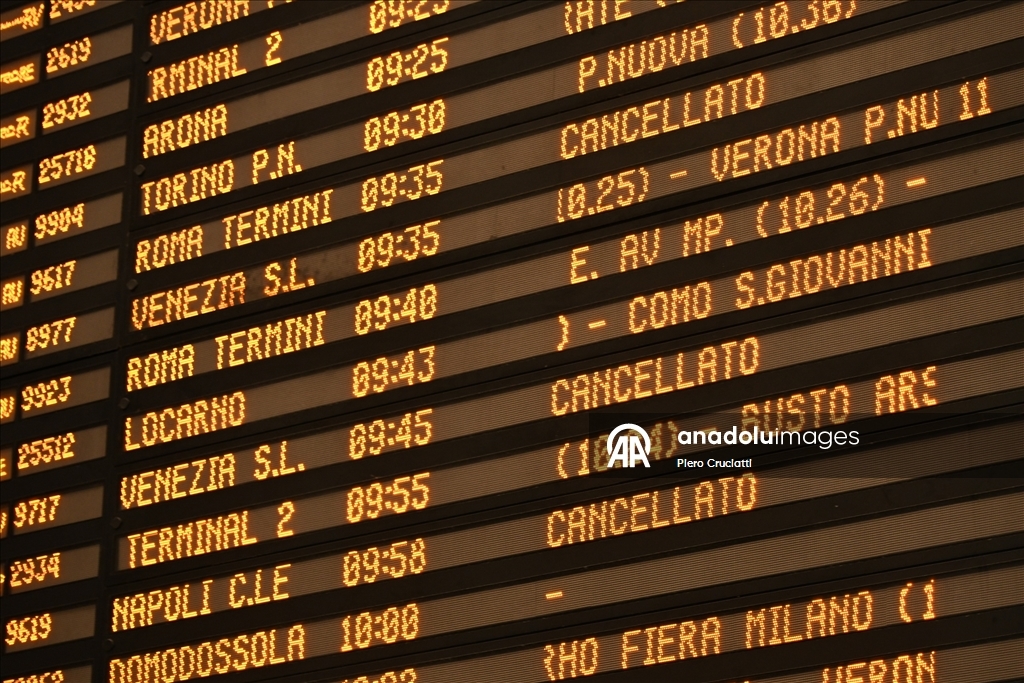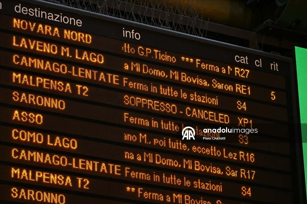 Grev, İtalya’nın önde gelen demiryolu işletmeleri Trenitalia, Trenord ve Italo’nun hizmetlerinde aksamalara yol açarken, Milano kentindeki Cadorna ve Merkez istasyonlarında biriken yolcular görüntülendi. (Piero Cruciatti - Anadolu Ajansı)Piero Cruciatti