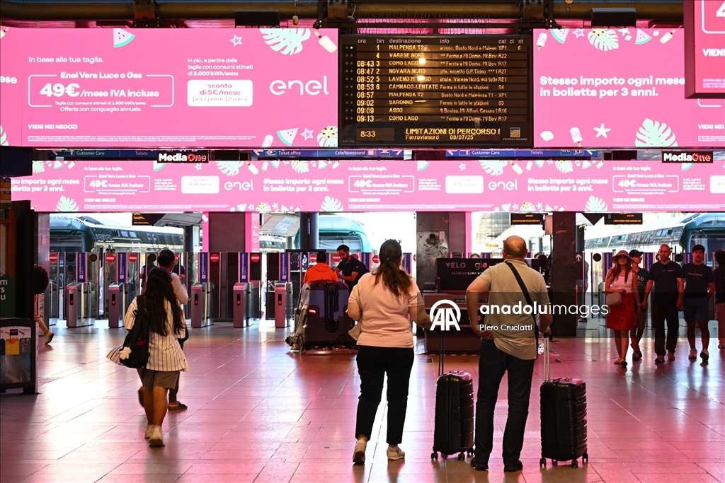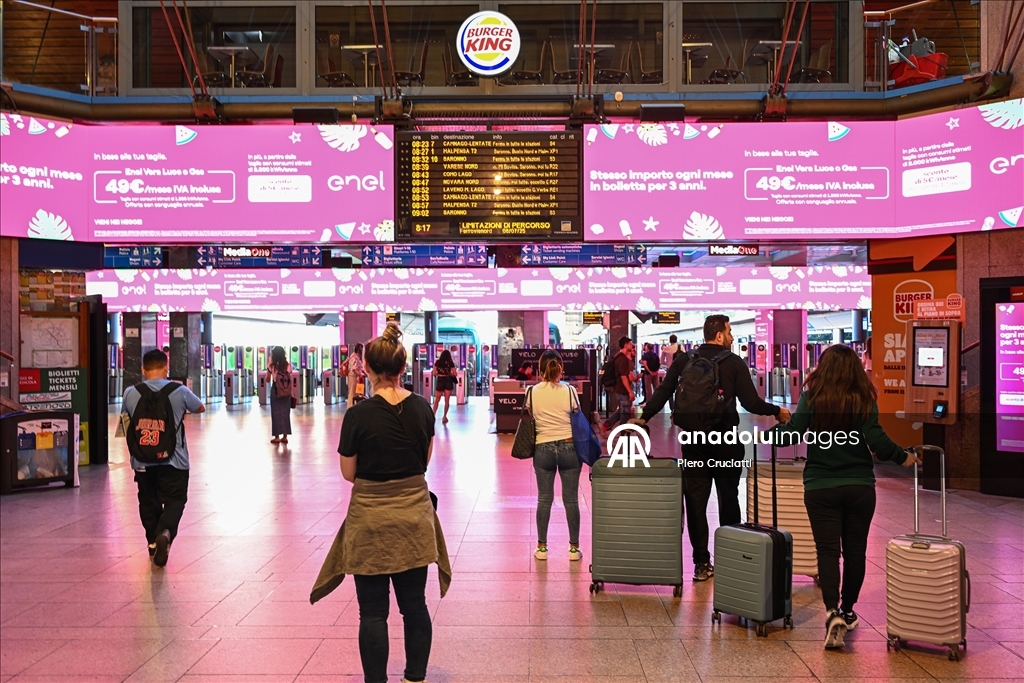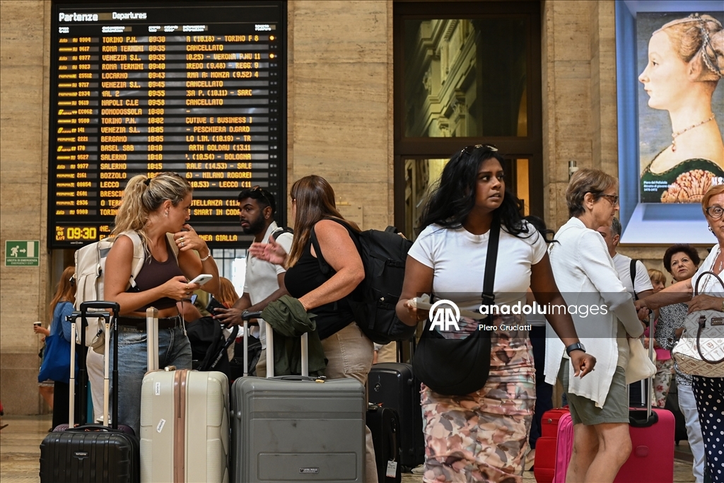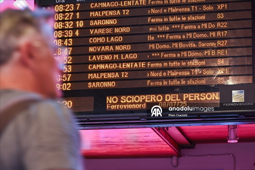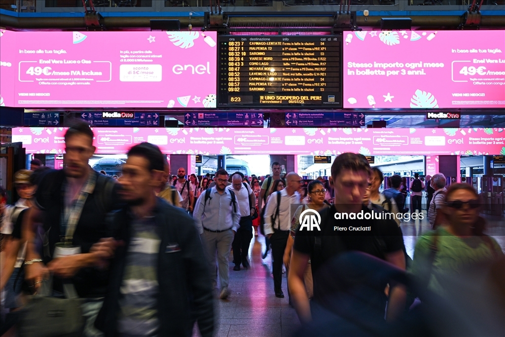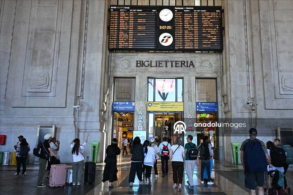 Grev, İtalya’nın önde gelen demiryolu işletmeleri Trenitalia, Trenord ve Italo’nun hizmetlerinde aksamalara yol açarken, Milano kentindeki Cadorna ve Merkez istasyonlarında biriken yolcular görüntülendi. (Piero Cruciatti - Anadolu Ajansı)Piero Cruciatti