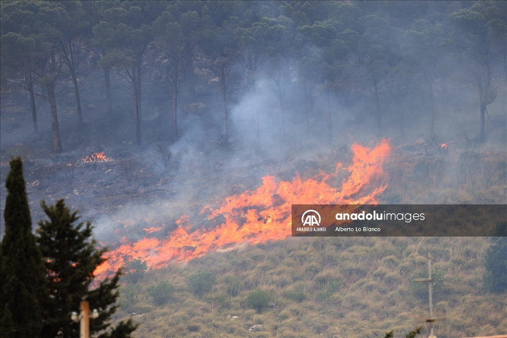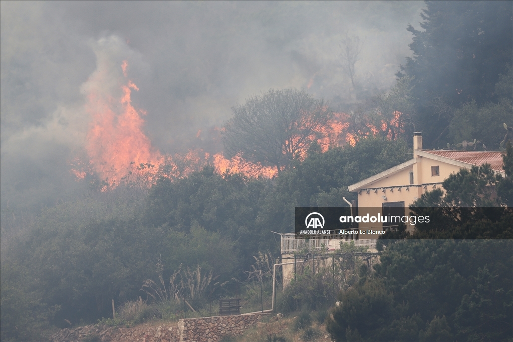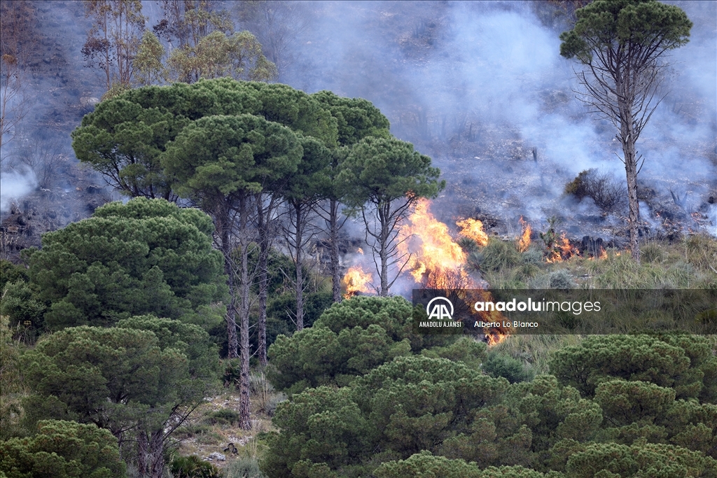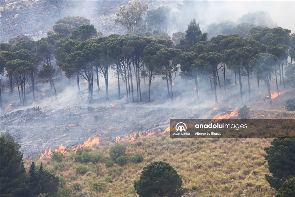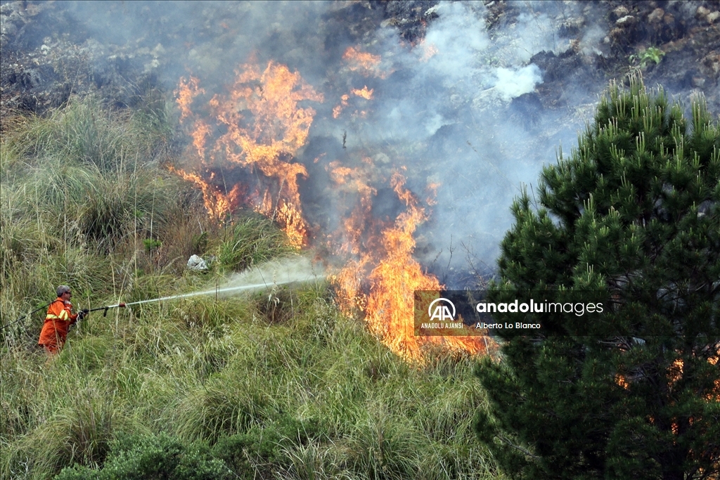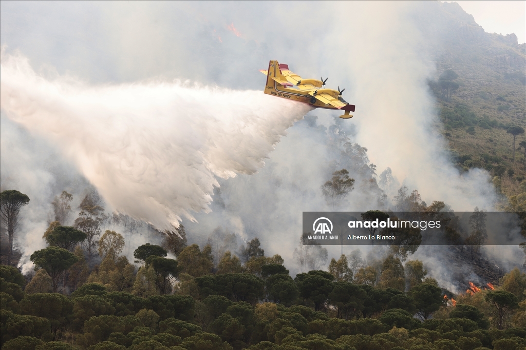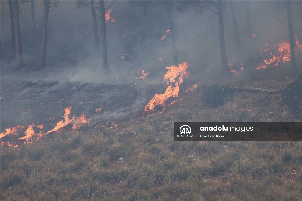 İtalya’nın güneyindeki Sicilya Adası’nın batısındaki Castelammare del Golfo beldesi civarındaki Inici dağında çıkan orman yangınına karadan ve havadan müdahale ediliyor. Yakındaki bazı yerleşim yerlerini de tehdit ettiği görülen yangını söndürme çalışmalarına iki Canadair uçağı da destek veriyor. ( Alberto Lo Bianco - Anadolu Ajansı )Alberto Lo Bianco