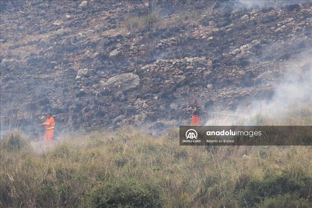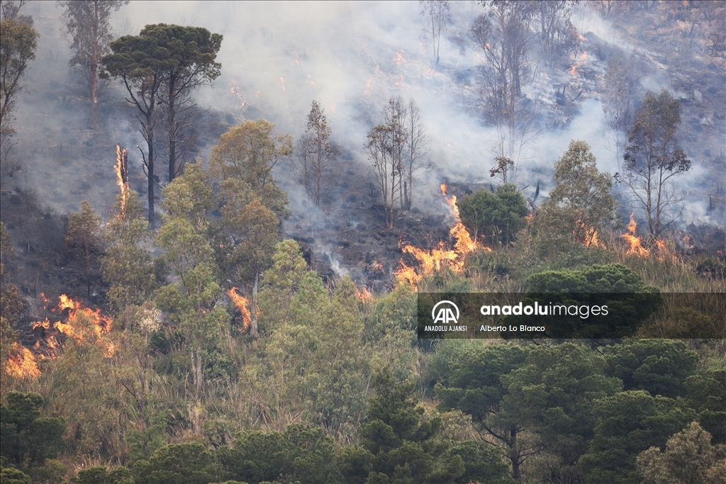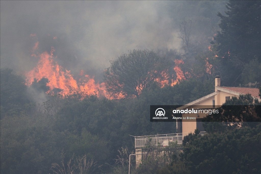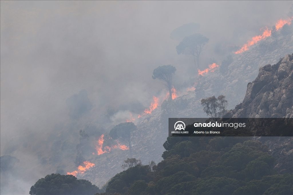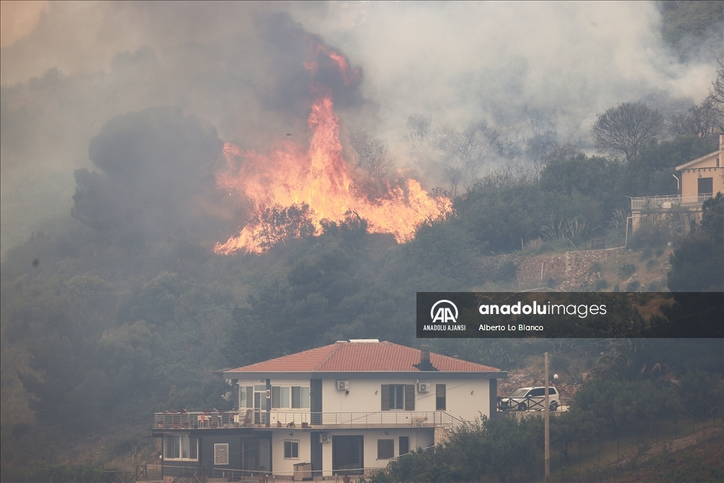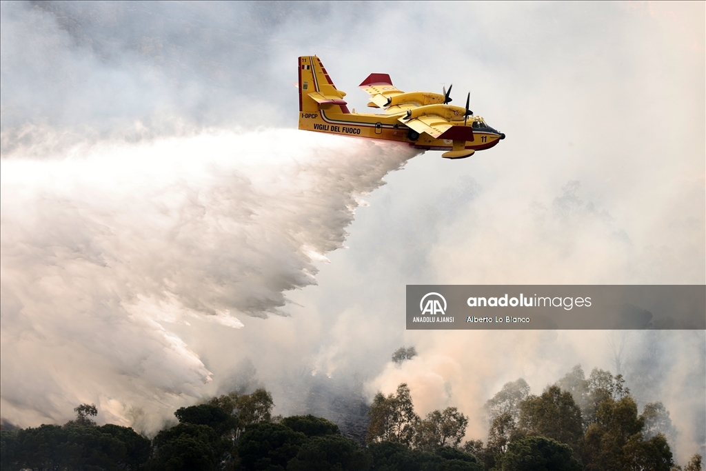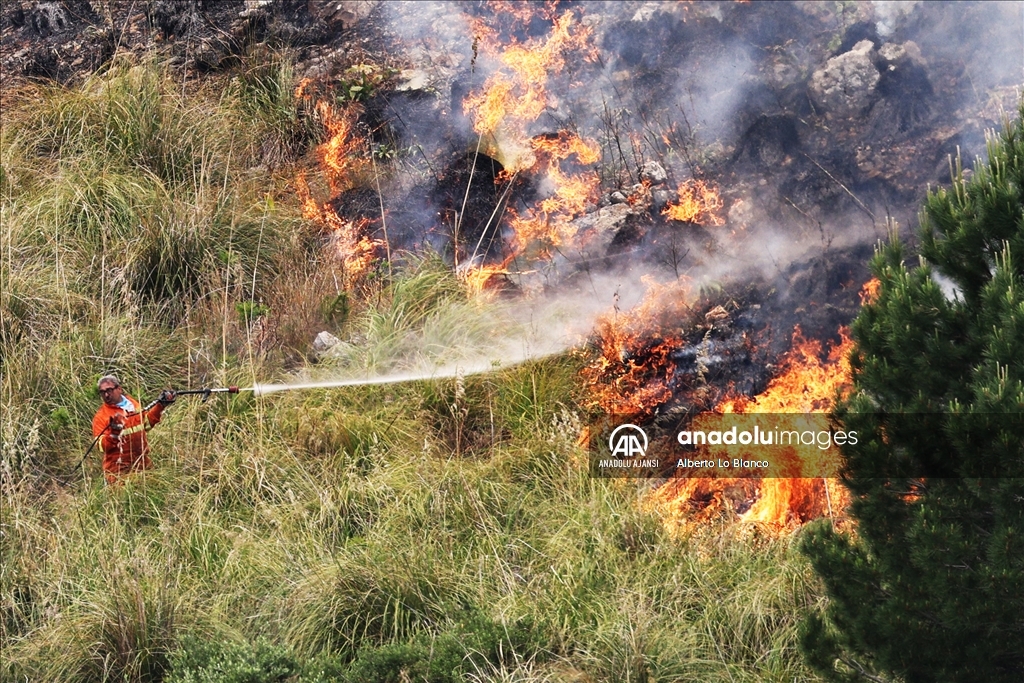İtalya’nın güneyindeki Sicilya Adası’nın batısındaki Castelammare del Golfo beldesi civarındaki Inici dağında çıkan orman yangınına karadan ve havadan müdahale ediliyor. Yakındaki bazı yerleşim yerlerini de tehdit ettiği görülen yangını söndürme çalışmalarına iki Canadair uçağı da destek veriyor. ( Alberto Lo Bianco - Anadolu Ajansı )Alberto Lo Bianco