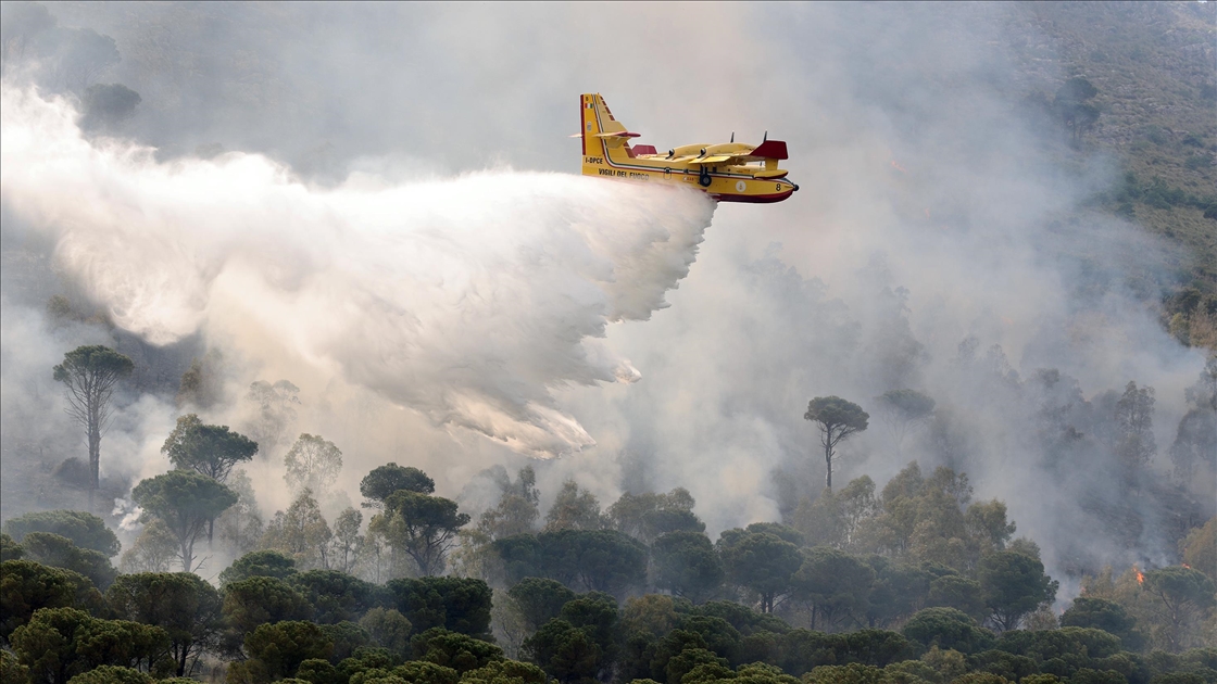 İtalya’nın güneyindeki Sicilya Adası’nın batısındaki Castelammare del Golfo beldesi civarındaki Inici dağında çıkan orman yangınına karadan ve havadan müdahale ediliyor. Yakındaki bazı yerleşim yerlerini de tehdit ettiği görülen yangını söndürme çalışmalarına iki Canadair uçağı da destek veriyor.