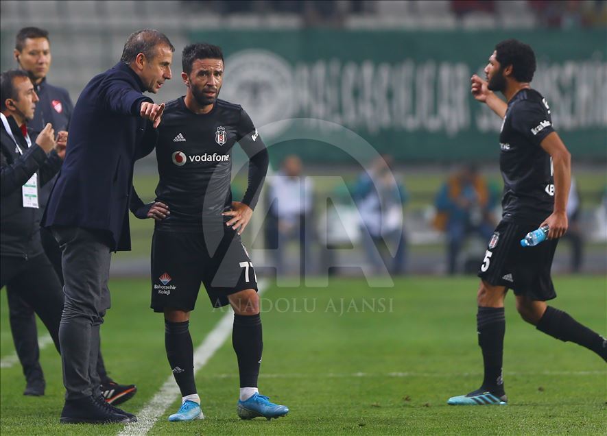 Süper Lig’in 12. haftasında, İttifak Holding Konyaspor ile Beşiktaş takımları Konya Büyükşehir Belediyesi Stadyumu’nda karşılaştı. Bir pozisyon sonrası Beşiktaş Teknik Direktörü Abdullah Avcı, (solda) Gökhan Gönül'ü (sol 2) yanına çağırarak taktik verdi. ( Abdullah Coşkun - Anadolu Ajansı )Abdullah Coşkun