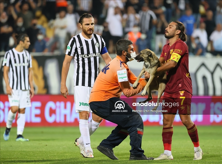 Süper Lig'in 5. haftasında iki İzmir temsilcisi Altay ile Göztepe, Bornova Aziz Kocaoğlu Stadı'nda karşılaştı. Karşılaşma sırasında bir köpek sahaya girdi. Göztepe'den Halil Akbunar (7) köpeği yakalayarak görevlilere teslim etti. ( Mehmet Emin Mengüarslan - Anadolu Ajansı )Mehmet Emin Mengüarslan