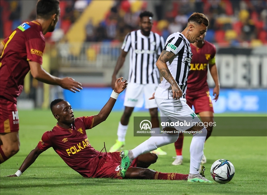 Süper Lig'in 5. haftasında iki İzmir temsilcisi Altay ile Göztepe, Bornova Aziz Kocaoğlu Stadı'nda karşılaştı. Bir pozisyonda Göztepe’den Kerem Alıcı (ortada) ile Altay’dan Khaly Thiam (sağda) mücadele etti. ( Mehmet Emin Mengüarslan - Anadolu Ajansı )Mehmet Emin Mengüarslan
