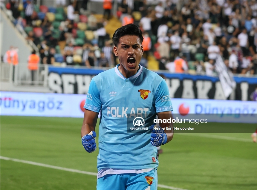 Süper Lig'in 5. haftasında iki İzmir temsilcisi Altay ile Göztepe, Bornova Aziz Kocaoğlu Stadı'nda karşılaştı. Bir pozisyonda Göztepe’den kaleci İrfan Can Eğribayat kurtardığı penaltı vuruşu sonrası sevinç yaşadı. ( Mehmet Emin Mengüarslan - Anadolu Ajansı )Mehmet Emin Mengüarslan