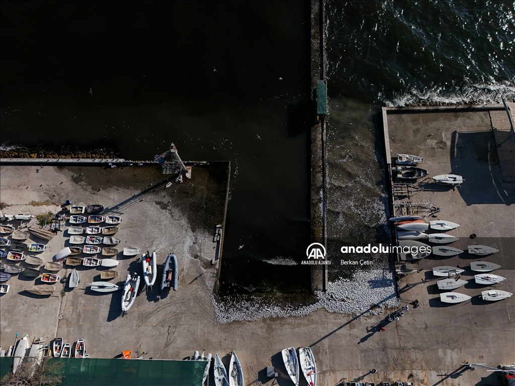 Deniz suyu renginin yeşil ve kahverengiye döndüğü körfezde balık ölümleri bugün Karşıyaka ilçesinin Aksoy Mahallesi'nde de yoğun olarak gözlemlendi. ( Berkan Çetin - Anadolu Ajansı )Berkan Çetin