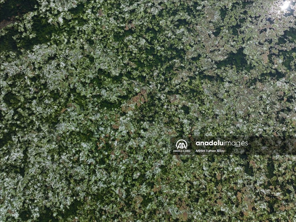 Trabzon'da karlar altında kalan yaylalar havadan görüntülendi