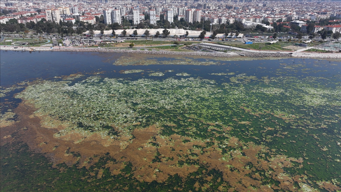 İzmir Körfezi'nde yosunlar yeşil örtü oluşturdu