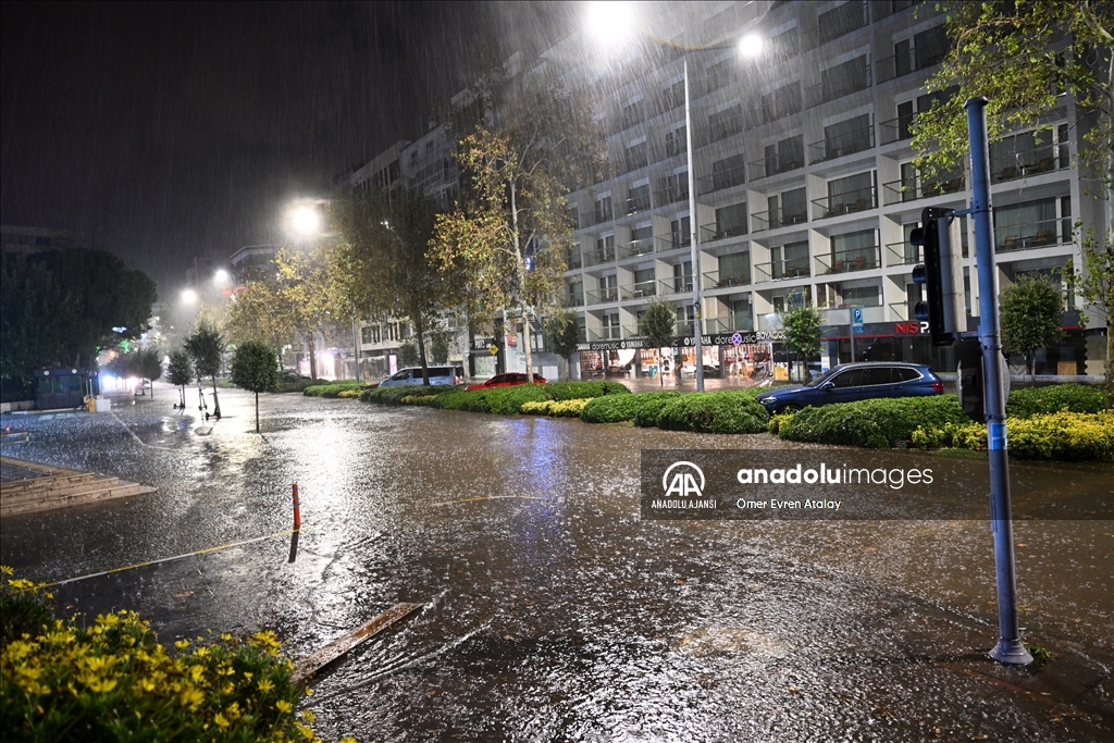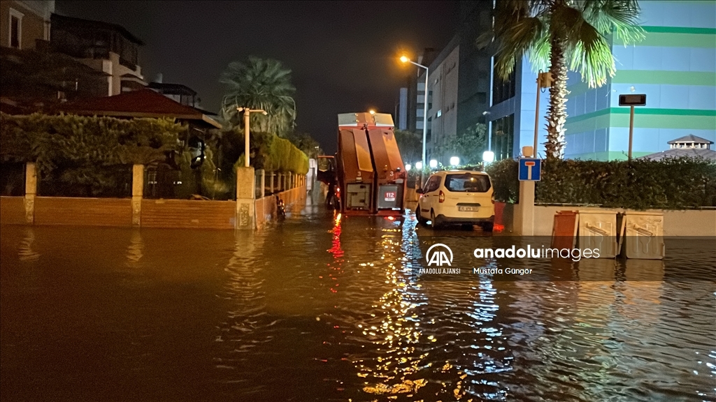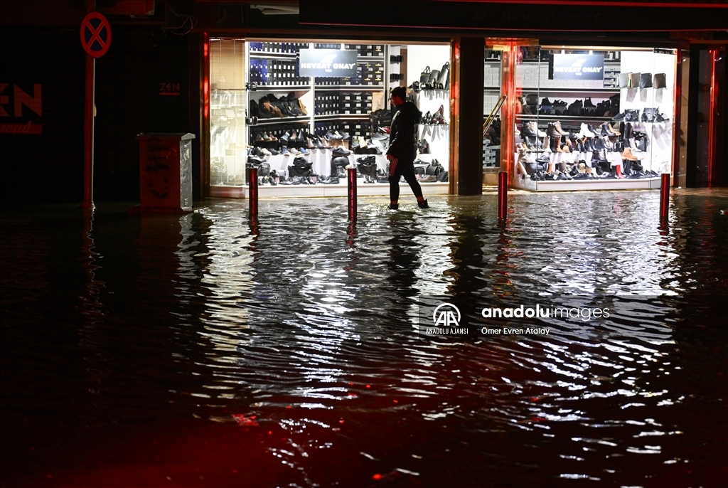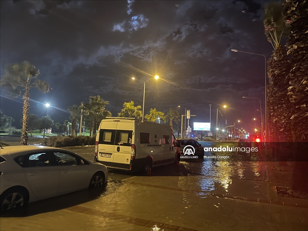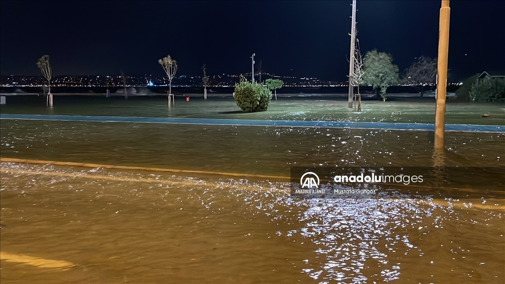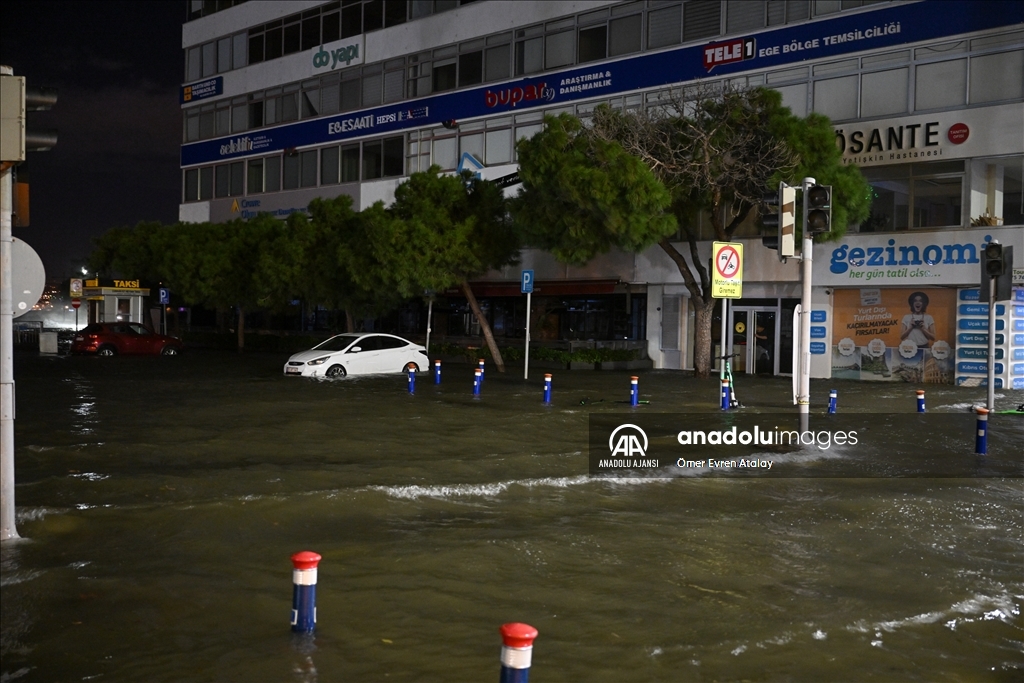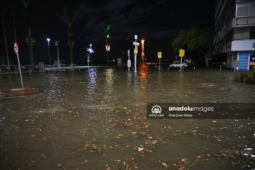 İzmir'in Karşıyaka ve Konak ilçelerinde yoğun yağışın ardından denizin taşması sonucu yollar su altında kaldı, çok sayıda iş yeri, apartman ve dükkanı su bastı. ( Ömer Evren Atalay - Anadolu Ajansı )Ömer Evren Atalay