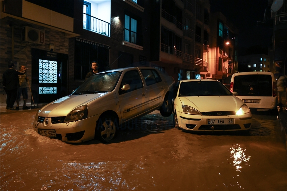 İzmir'in Buca, Karabağlar, Gaziemir, Konak, Bornova, Balçova, Karşıyaka, Çiğli, Narlıdere ilçeleri ve çevresinde etkili olan sağanak hayatı olumsuz etkiledi. Kentte akşam saatlerinden itibaren yer yer şiddetini artıran sağanak, bazı sokaklarda su birikintilerine neden oldu. ( Mahmut Serdar Alakuş - Anadolu Ajansı )Mahmut Serdar Alakuş