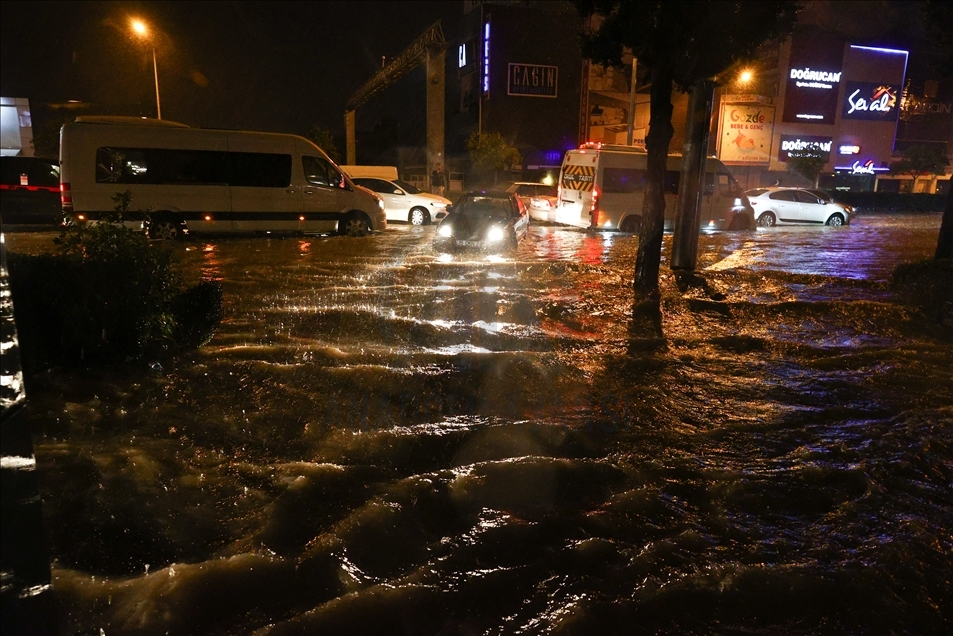 İzmir'in Buca, Karabağlar, Gaziemir, Konak, Bornova, Balçova, Karşıyaka, Çiğli, Narlıdere ilçeleri ve çevresinde etkili olan sağanak hayatı olumsuz etkiledi. ( Mehmet Emin Mengüarslan - Anadolu Ajansı )Mehmet Emin Mengüarslan
