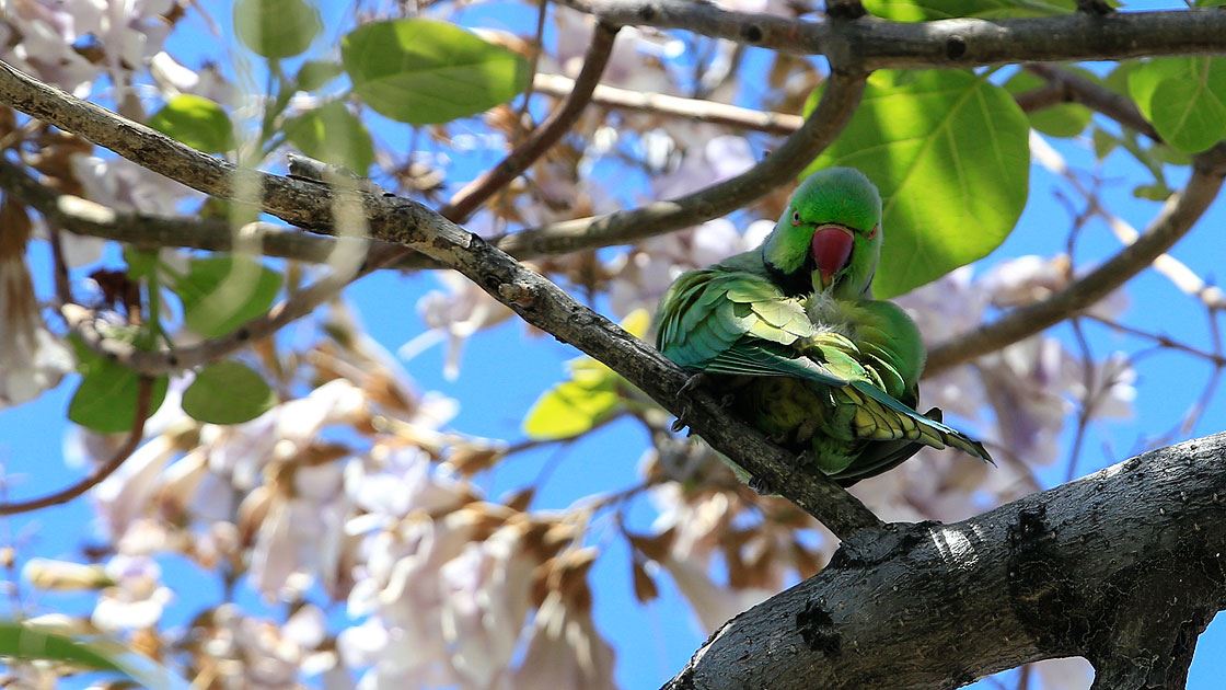 Bilimsel ismi, "Psittacula Krameri" olan yeşil papağanlar İzmir'deki parklarda ve ağaçlık alanlarda sıklıkla görülüyor. Doğal yaşam alanları Afrika ve Güney Asya olan yeşil papağanlar, parklardaki palmiye ağaçlarını yuva olarak kullanıyor.