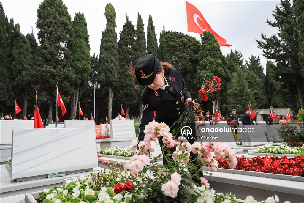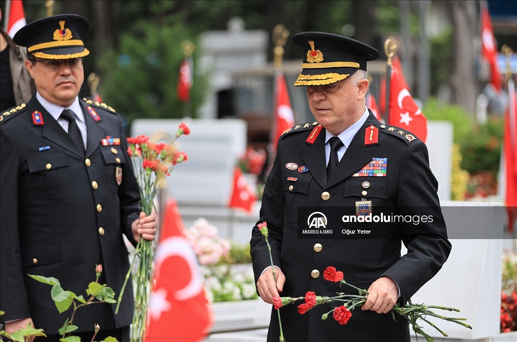 İstanbul'da Jandarma Teşkilatının 184'üncü kuruluş yıldönümü dolayısıyla Edirnekapı Şehitliği'nde tören düzenlendi. Törene katılan İl Jandarma Komutanı Tümgeneral Yusuf Kenan Topçu şehitlerin kabirlerine karanfil bıraktı. ( Oğuz Yeter - Anadolu Ajansı )Oğuz Yeter