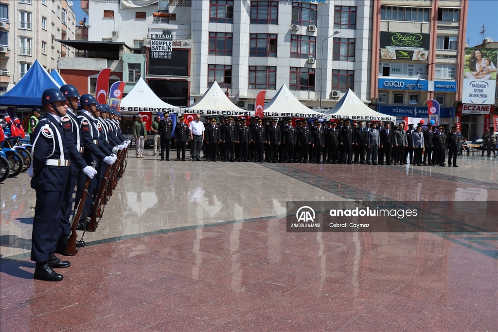 Kilis'te Jandarma Teşkilatının 184. kuruluş yıl dönümü kutlandı. Cumhuriyet Meydanı'nda düzenlenen törende İl Jandarma Komutanı Albay Selami Akşit, Atatürk Anıtı'na çelenk sundu, saygı duruşunda bulunulup İstiklal Marşı okundu. ( Cebrail Caymaz - Anadolu Ajansı )Cebrail Caymaz