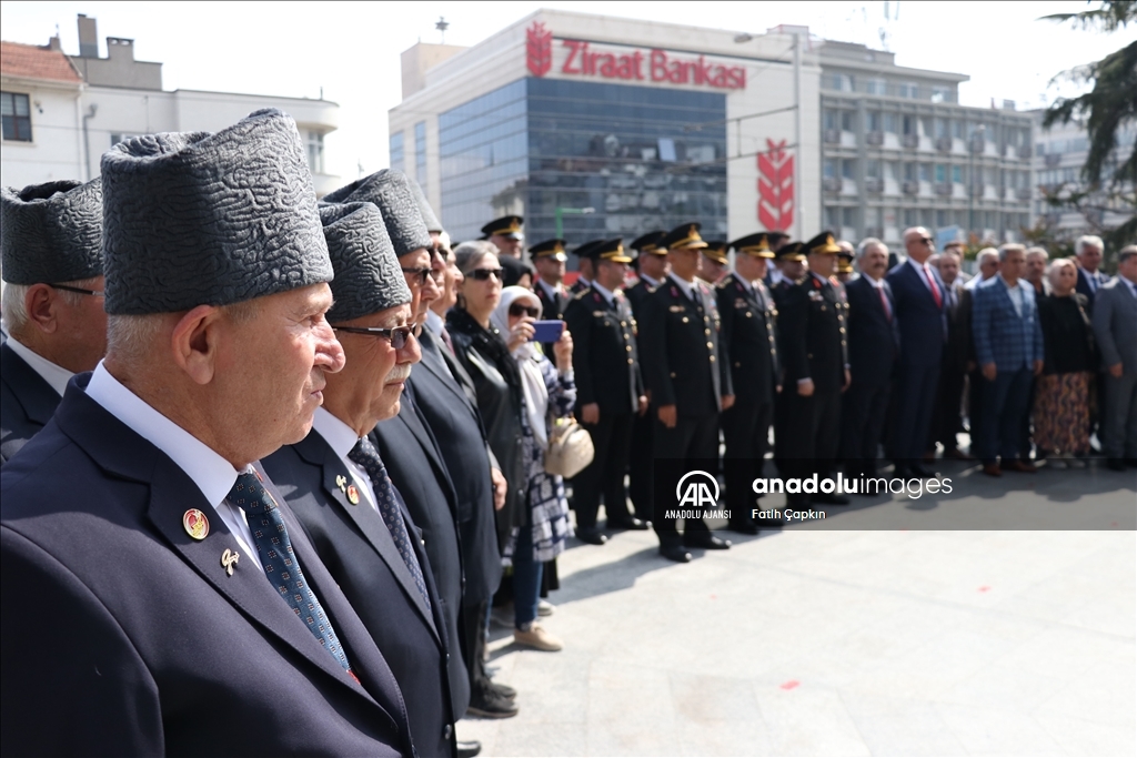 Kırklareli'nde, Jandarma Teşkilatının 184. kuruluş yıl dönümü dolayısıyla Özgürlük ve Demokrasi Meydanındaki Atatürk Anıtı'nda tören düzenlendi. ( Özgün Tiran - Anadolu Ajansı )Özgün Tiran