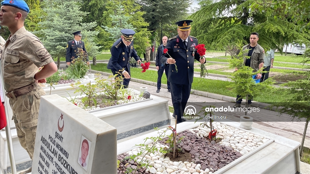 Jandarma Teşkilatının 184'üncü kuruluş yıl dönümü Yozgat'ta düzenlenen çeşitli etkinliklerle kutlandı. Etkinlik kapsamında Yozgat Şehitliği ziyaret edilerek kabirlere tek tek karanfil bırakıldı. ( Ömer Ertuğrul - Anadolu Ajansı )Ömer Ertuğrul