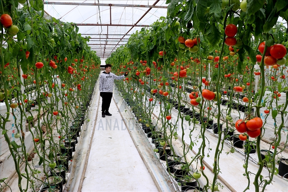 Jeotermalle ısıtılan seralarda üretilen "Simav Eynal domatesi" sofraları süslüyor