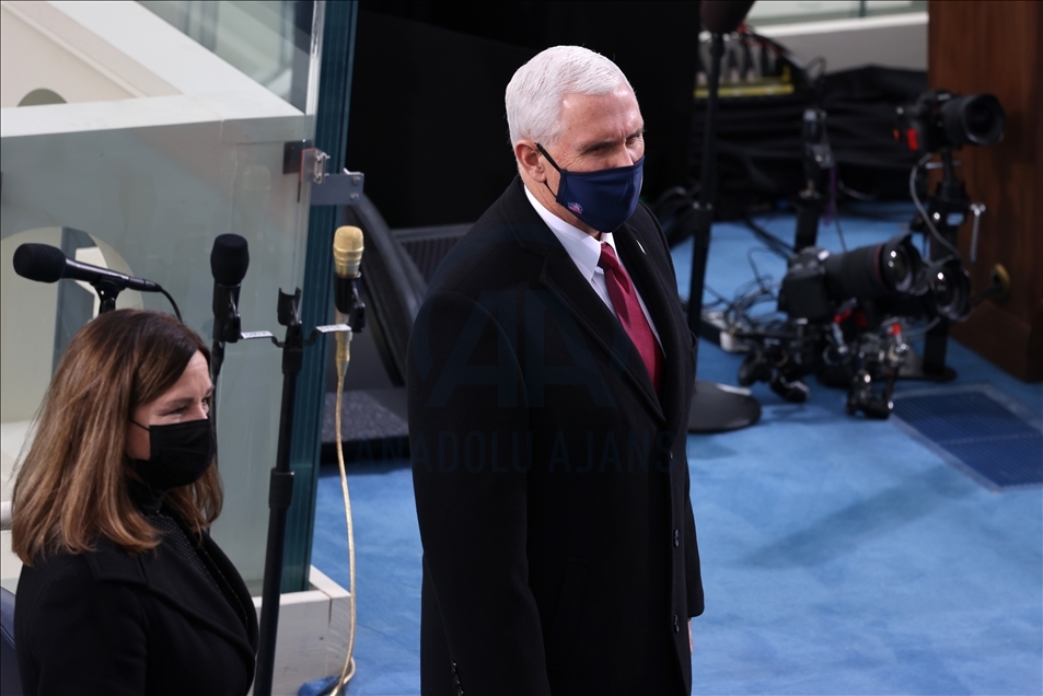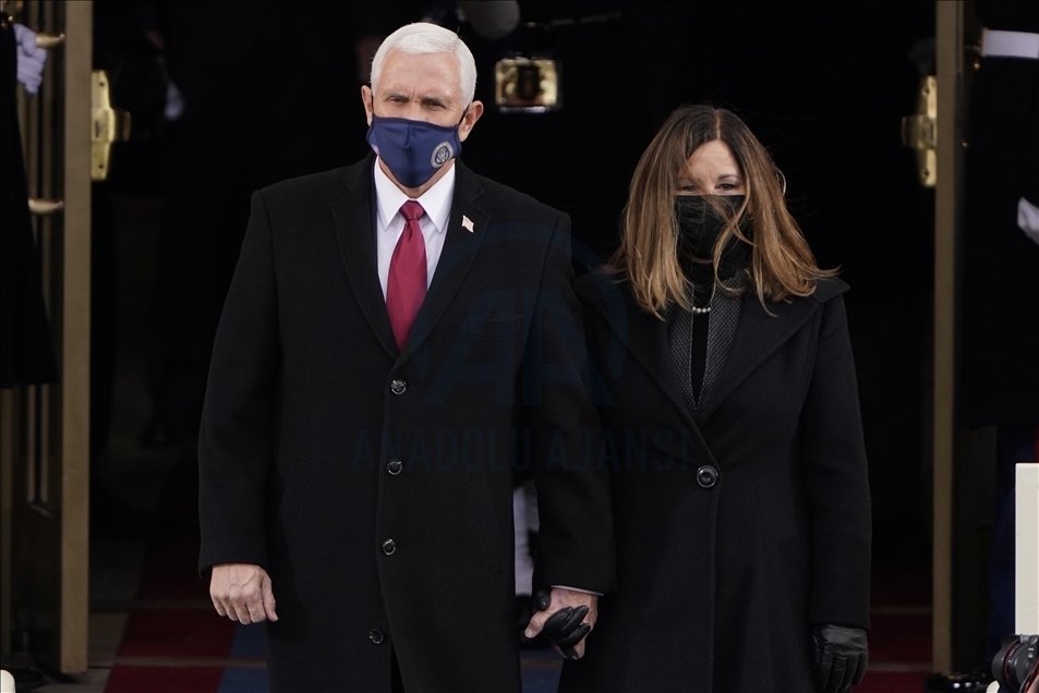 ABD'de 3 Kasım 2020'de yapılan seçimleri kazanan Joe Biden, ABD Kongresindeki törende yemin ederek ülkenin 46'ncı başkanı oldu. Törene, başkan yardımcılığını Kamala Harris'e devreden Mike Pence (solda) ve eşi Karen Pence (sağda) de katıldı. ( EPA / Tasos Katopodis / Pool - Anadolu Ajansı )EPA / Tasos Katopodis / Pool