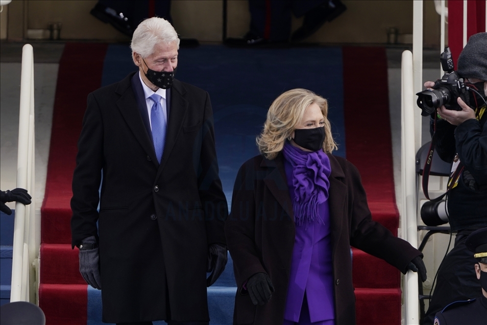 ABD'de seçilmiş Başkan Joe Biden ve seçilmiş Başkan Yardımcısı Kamala Harris, bugün yemin ederek görevlerine başlayacak. ABD'nin eski başkanı Bill Clinton (solda) eşi Hillary Clinton (sağda) ile birlikte ABD Başkanlığına seçilen Joe Biden'in yemin törenine katılmak üzere başkent Washington'daki Kongre binasına geldi. ( EPA / Patrick Semansky - Anadolu Ajansı )EPA / Patrick Semansky