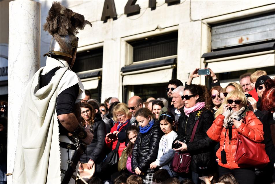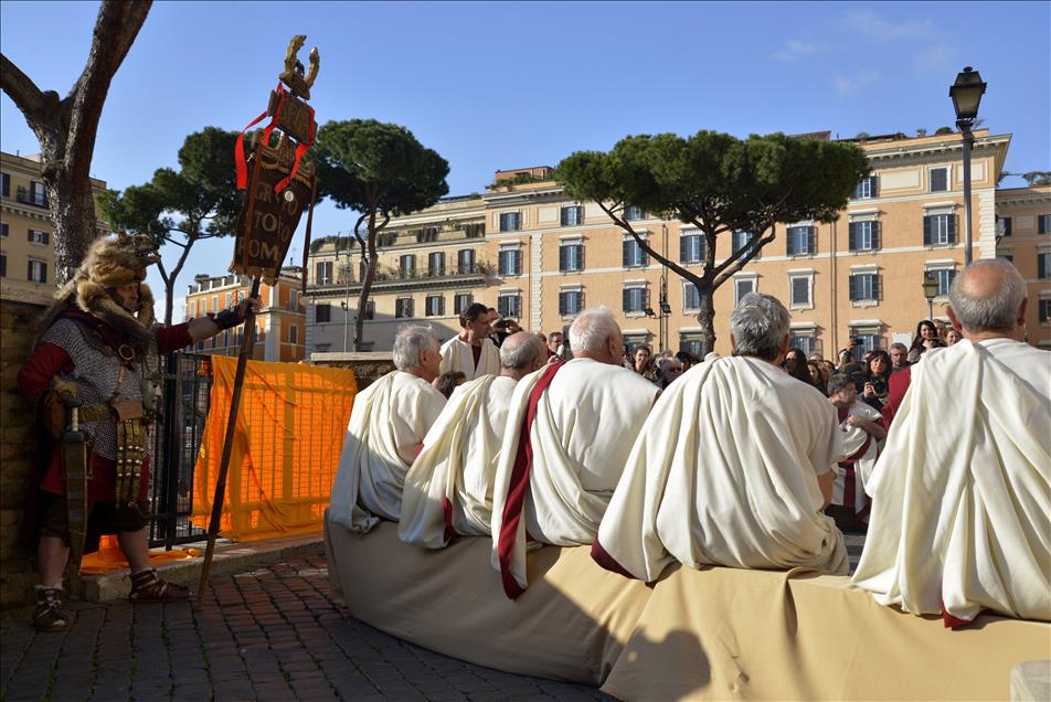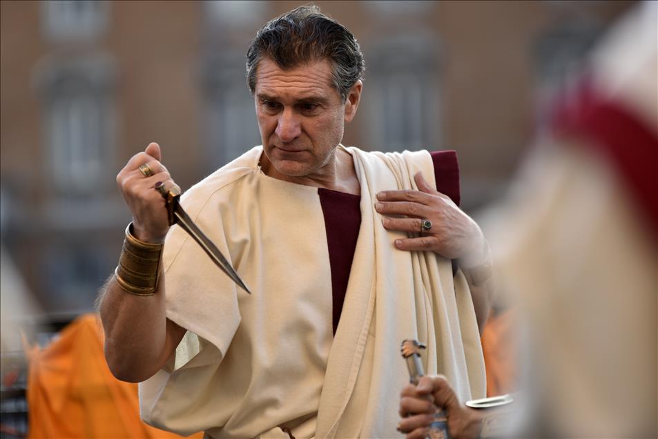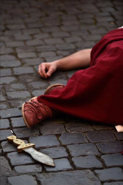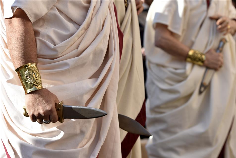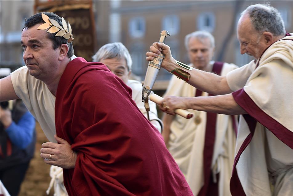 Tarihin önemli liderleri arasında yer alan ve yaptığı reform hareketleriyle Roma Cumhuriyeti’nin imparatorluğa dönüşmesinde büyük rol oynayan Romalı Diktatör Jül (Julius) Sezar, ölüm yıldönümü olan 15 Mart’ta başkent Roma’da ilginç bir etkinlikle anıldı. Roma Tarih Grubu tarafından düzenlenen etkinlikle ünlü komutan Sezar’ın, eski arkadaşı Marcus Brutus tarafından Senato çıkışında sırtından bıçaklanarak öldürülmesi (Ides of March), figüranlar tarafından canlandırıldı. Etkinlik, Romalıların ve Roma’yı ziyarete gelen turistlerin büyük ilgisini çekti. ( Alvaro Padilla Bengoa - Anadolu Ajansı )Alvaro Padilla Bengoa
