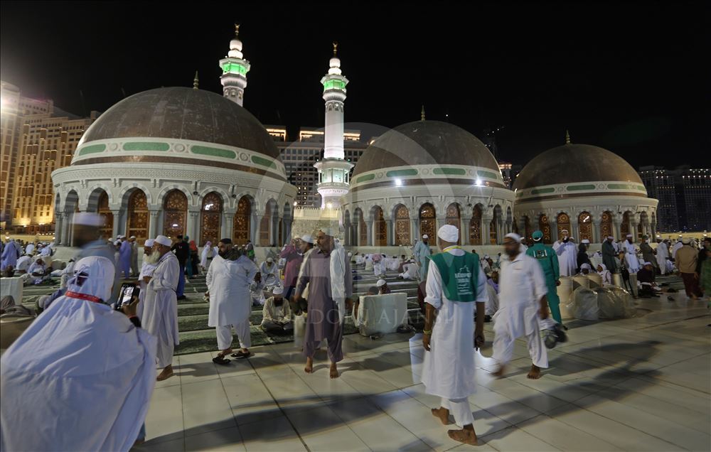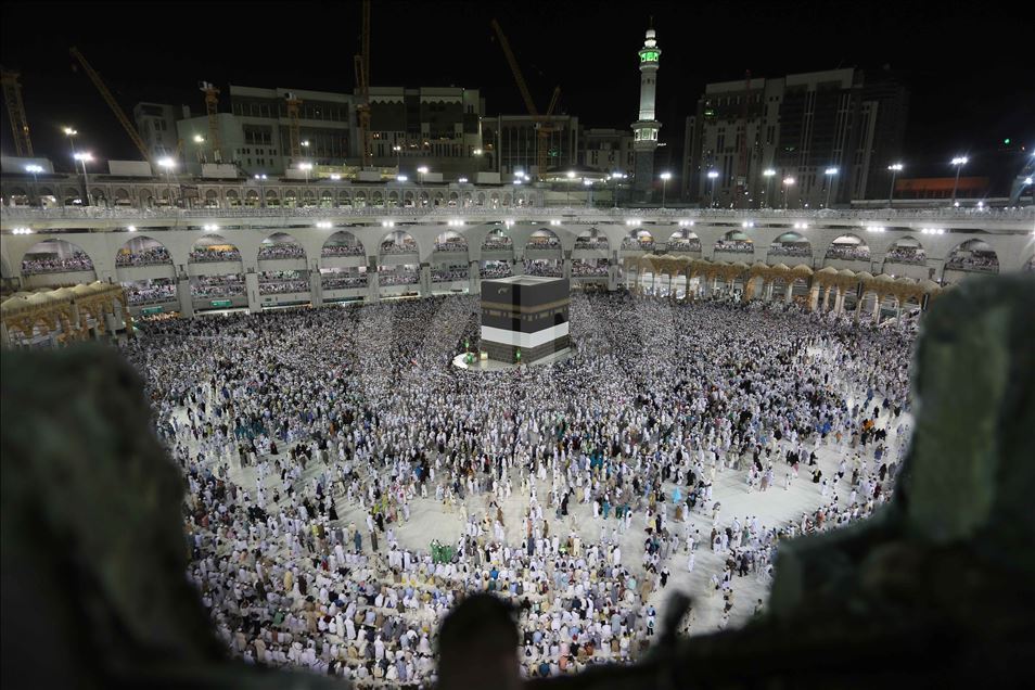 Hac farizasını yerine getirmek için kutsal topraklara gelen Müslümanlar, Kabeyi görmenin ve vazifelerini yerine getirmenin mutluğunu yaşıyor. Mescidi Haram ve çevresinde, akşam vaktinden sabah namazına kadar yoğunluk yaşanıyor. Müslümanlar, yatsı namazını kıldı. ( Ashraf Amra - Anadolu Ajansı )Ashraf Amra