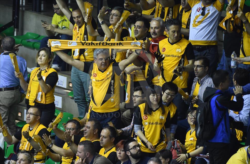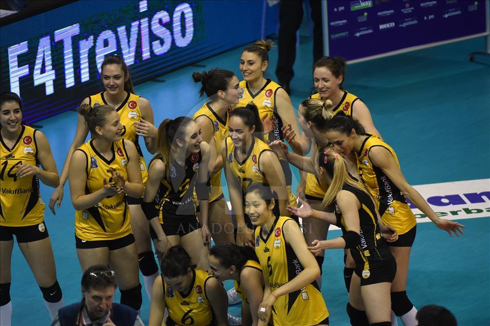 Kadınlar CEV Şampiyonlar Ligi Dörtlü Final ilk maçında VakıfBank İstanbul, bir diğer Türk ekibi Eczacıbaşı VitrA ile İtalya'nın Treviso şehrindeki Palaverde Spor Salonu'nda karşılaştı. Maçı kazanan Vakıfbank'ın taraftarları sevinç yaşadı. ( Pier Marco Tacca - Anadolu Ajansı )Pier Marco Tacca