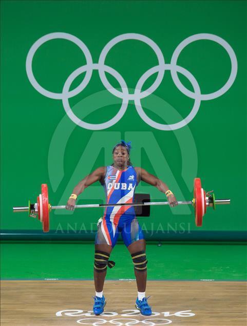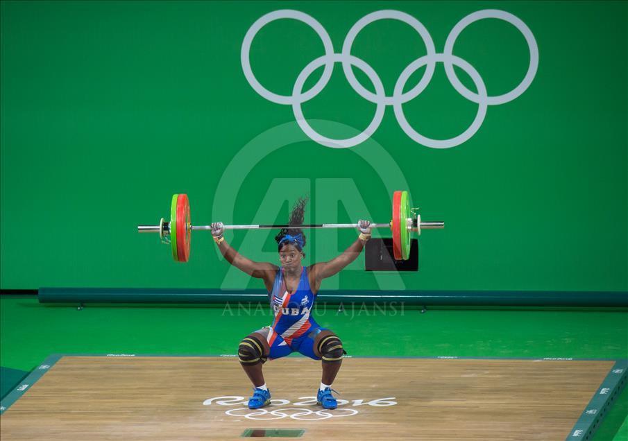 2016 Rio Olimpiyat Oyunları’nda kadınlar halter kategorisinde 63 kilogramda mücadeleler gerçekleşti. Kübalı sporcu Marina de la Caridad Rodriguez Mitjan da podyuma çıktı. ( Stringer - Anadolu Ajansı )Stringer