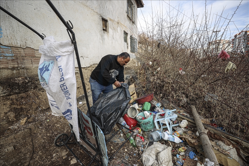 Kağıt ve çöp toplayıcılığı yaparak 4'ü engelli 5 çocuğunun geçimini sağlamaya çalışan Durak Metin (sağda) ve ailesi, tek odalı, sağlık açısından riskler barındıran bir gecekonduda hayat mücadelesi veriyor.