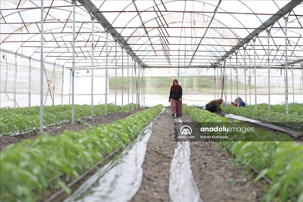 6 Şubat'taki depremlerin merkez üssü Kahramanmaraş'ta, depremzede çiftçiler seralarında üretime devam ediyor. Depremin etkilediği Türkoğlu ilçesine bağlı kırsal Kadıoğlu Çiftliği Mahallesi, kentin tarımsal üretiminin yoğun yapıldığı yerler arasında bulunuyor. ( Rıdvan Korkulutaş - Anadolu Ajansı )Rıdvan Korkulutaş